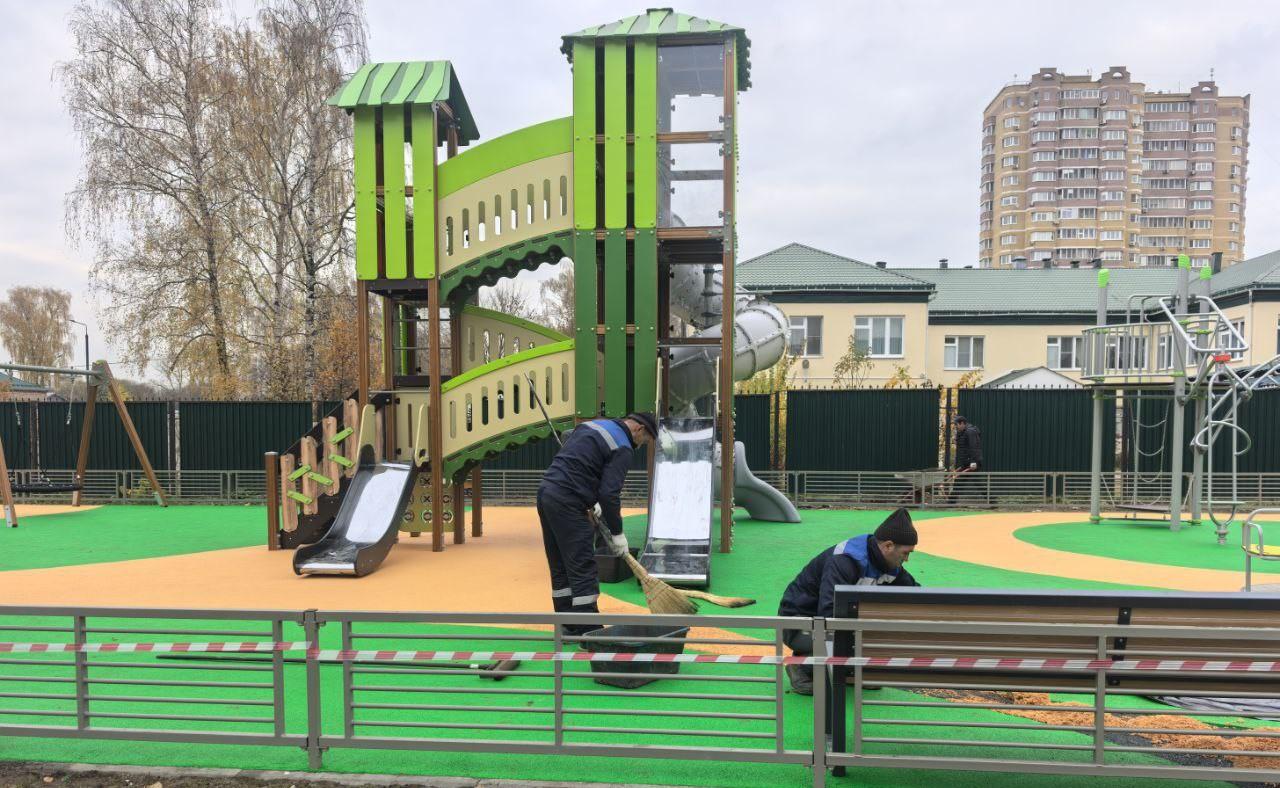 Одновременно подходят к завершению работы по обустройству губернаторского детского игрового комплекса площадью 450 кв. м. Сейчас идут работы по укладке покрытия.