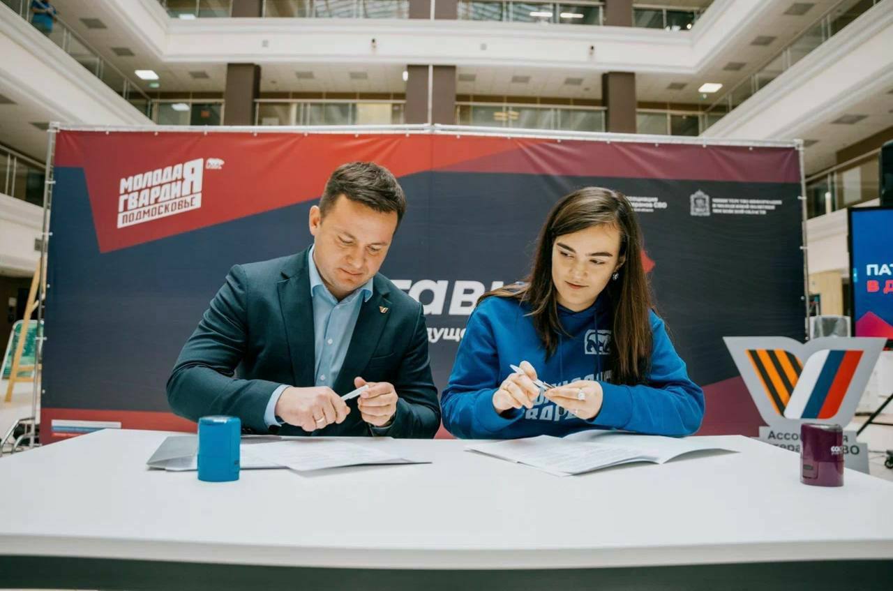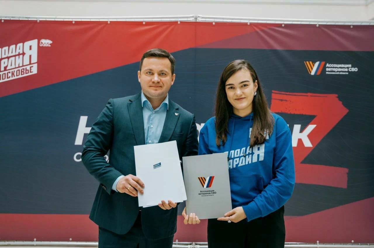 Соглашение подписали Кирилл Лосунчуков, руководитель Ассоциации ветеранов СВО Московской области, кавалер трёх Орденов Мужества, и Диана Алумянц, возглавляющая Молодую Гвардию Подмосковья.