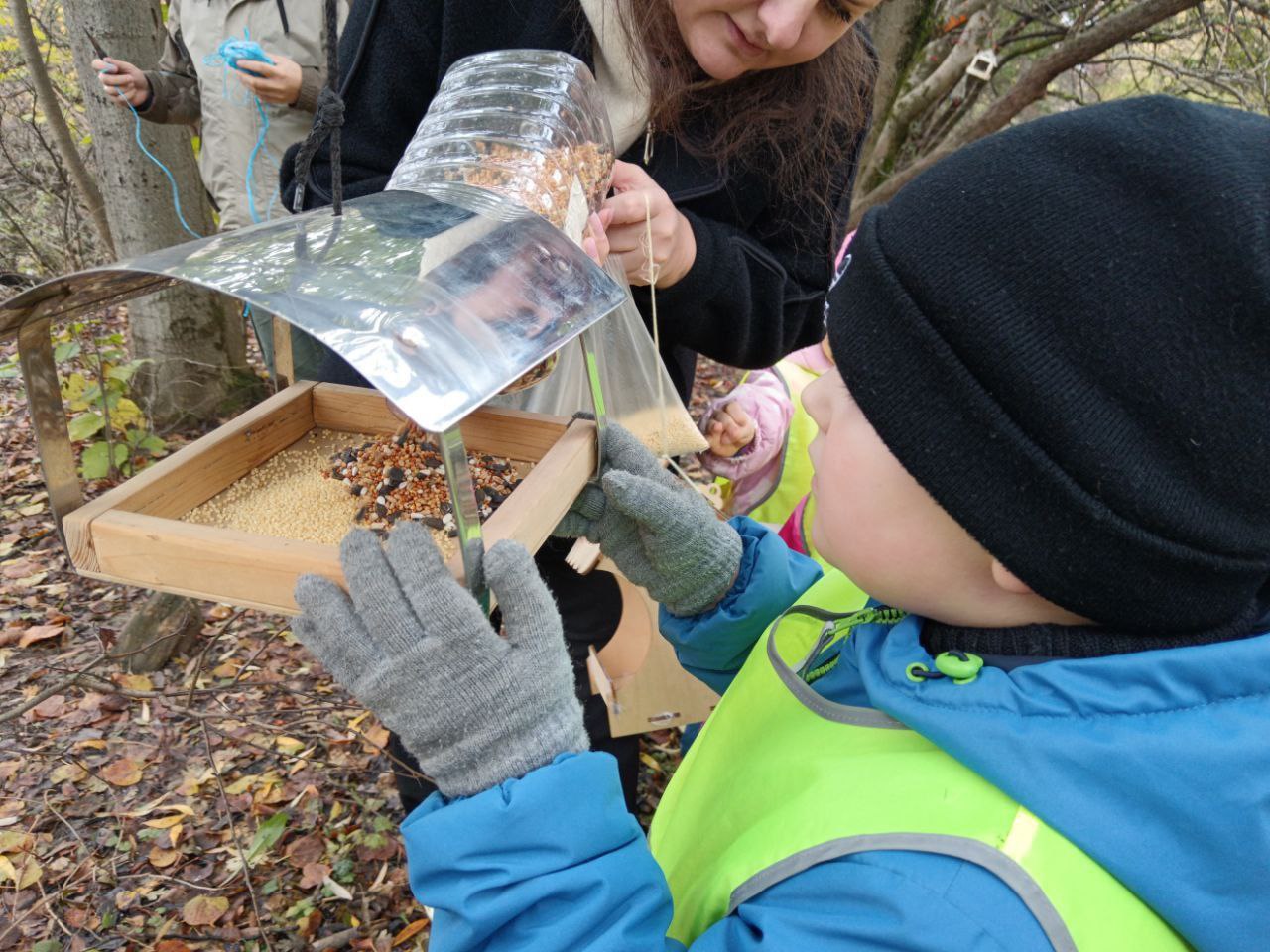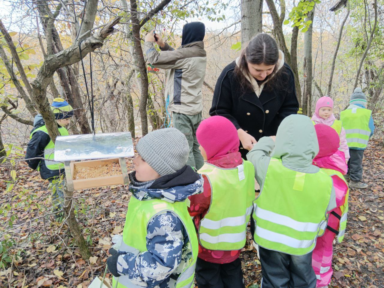 Вместе с юными жителями округа сотрудники парка развесили новые кормушки, наполнили кормом не только их, но и соседние птичьи «столовые».