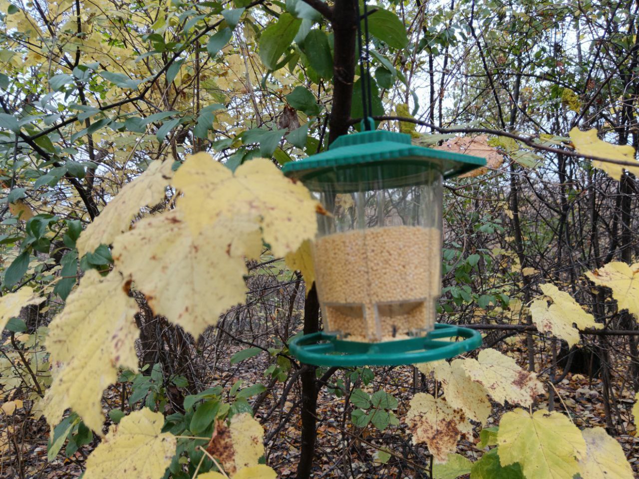 Пернатым и мохнатым: в парке Долгопрудного развесили новые кормушки