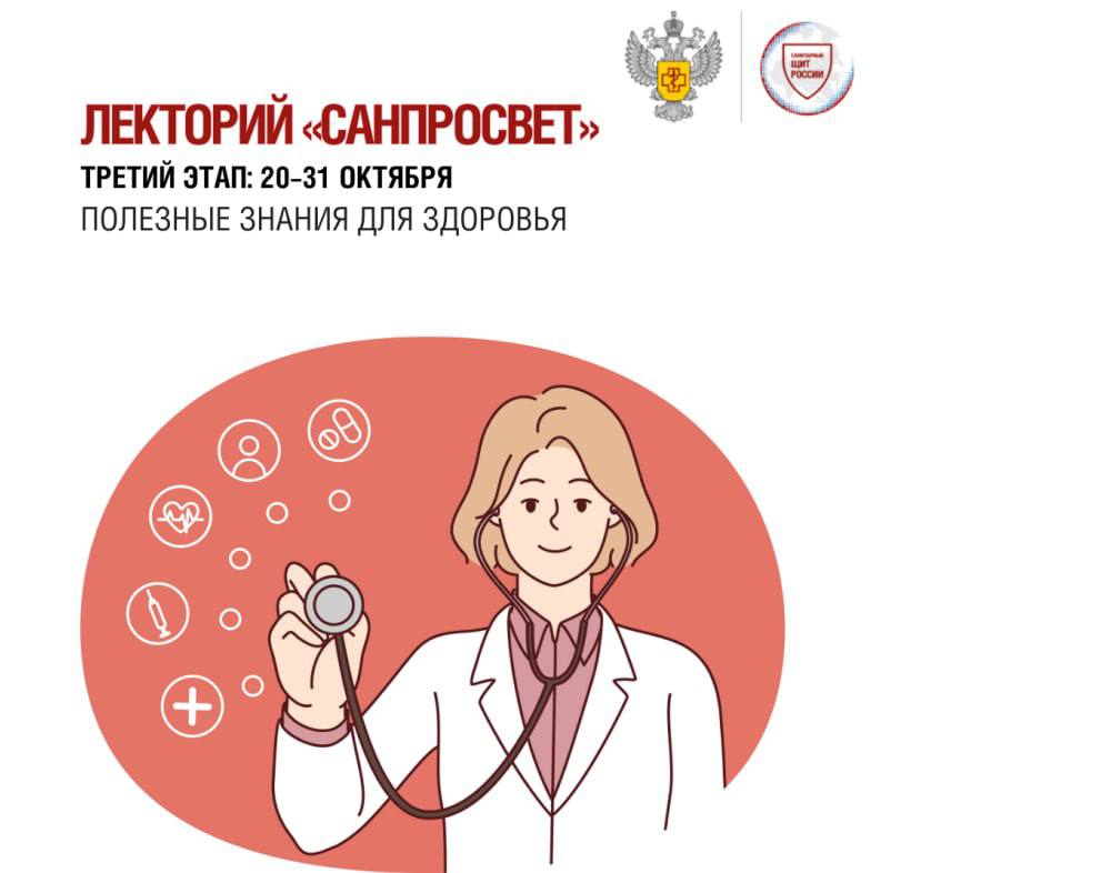 С 20 по 31 октября 2025 года проходит очередной этап просветительских лекций «Санпросвет» от экспертов Роспотребнадзора с актуальными рекомендациями по профилактике и укреплению здоровья.