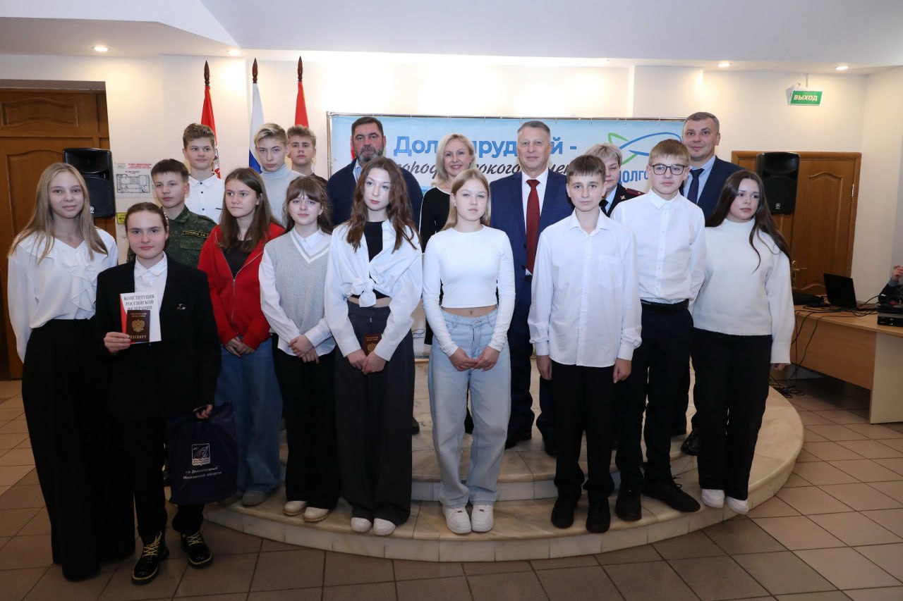 Вместе с паспортом юные долгопрудненцы получили брошюру Конституции РФ и сувениры с символикой нашего города.