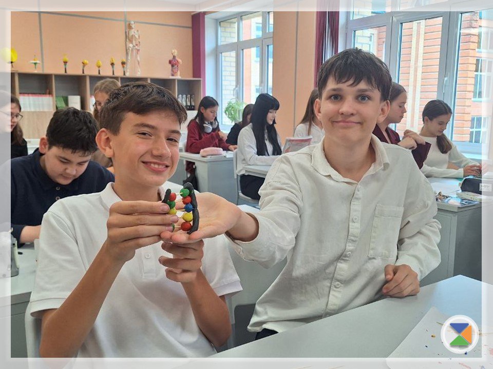 Наши ребята начали изучать одни из самых сложных вопросов о молекулах жизни — ДНК. Чтобы лучше понять структуру и функции, они своими руками моделировали двойную спираль ДНК из бумаги и пластилина.