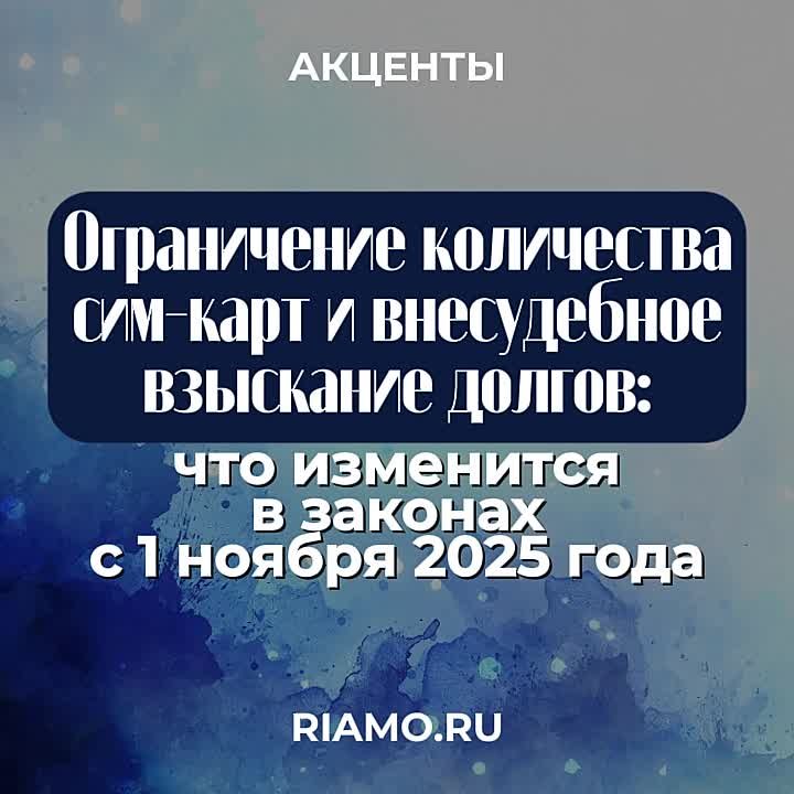 Об изменениях в законах с 1 ноября и объясняем, сколько сим-карт можно будет иметь, как будут взыскивать долги и какие товары будут подключены к «честному знаку», читайте в материале РИАМО.
