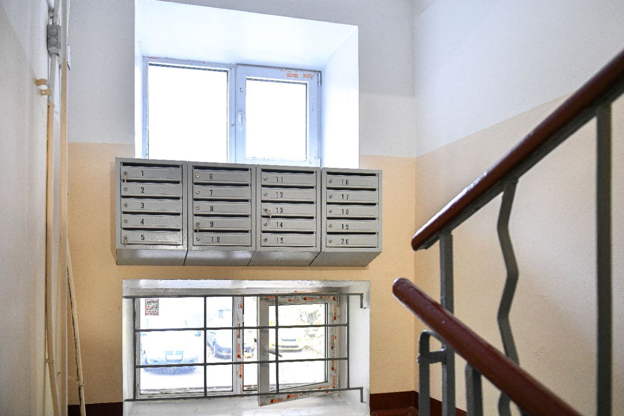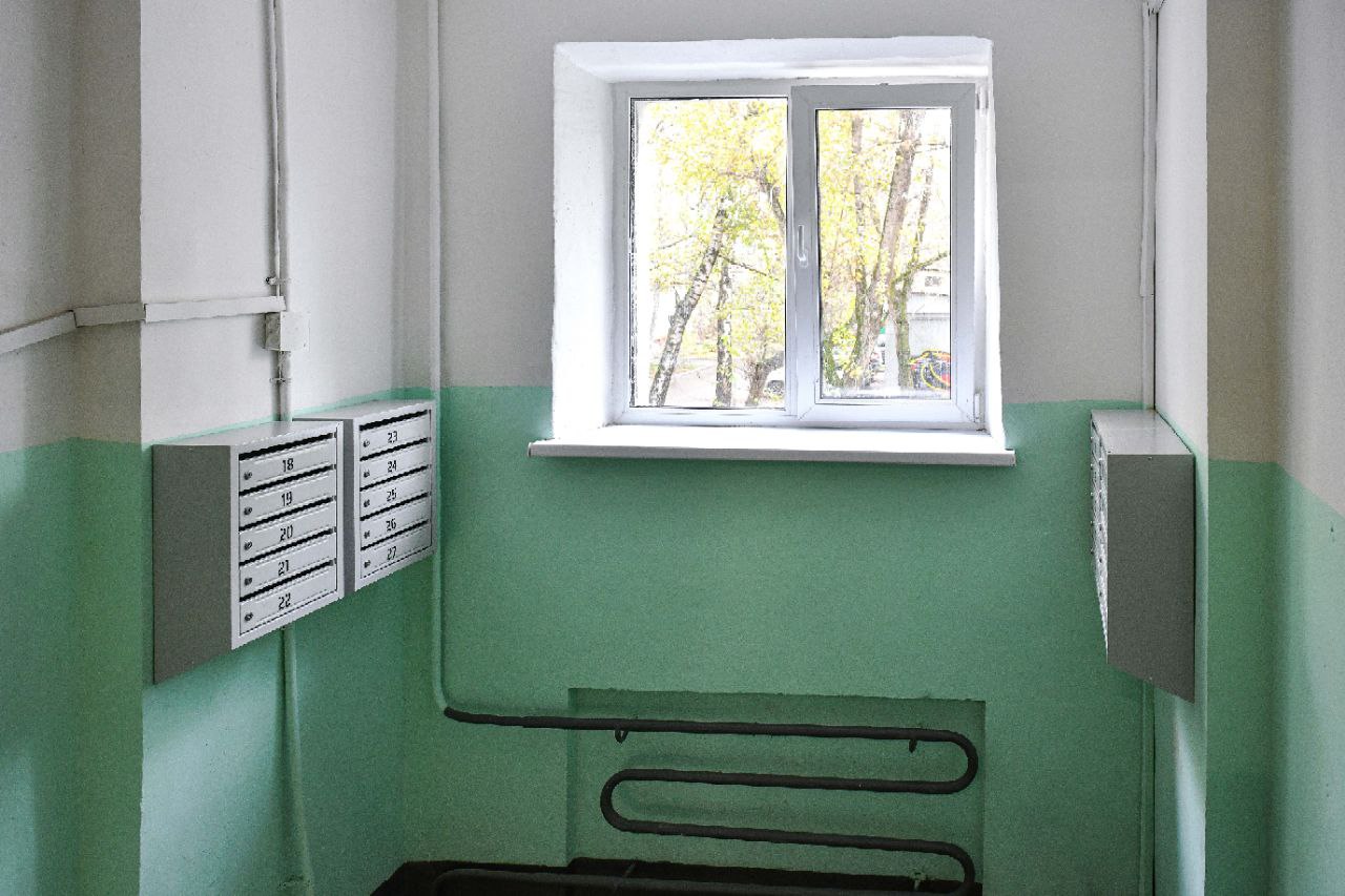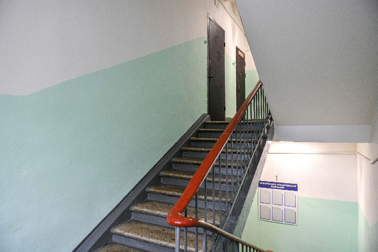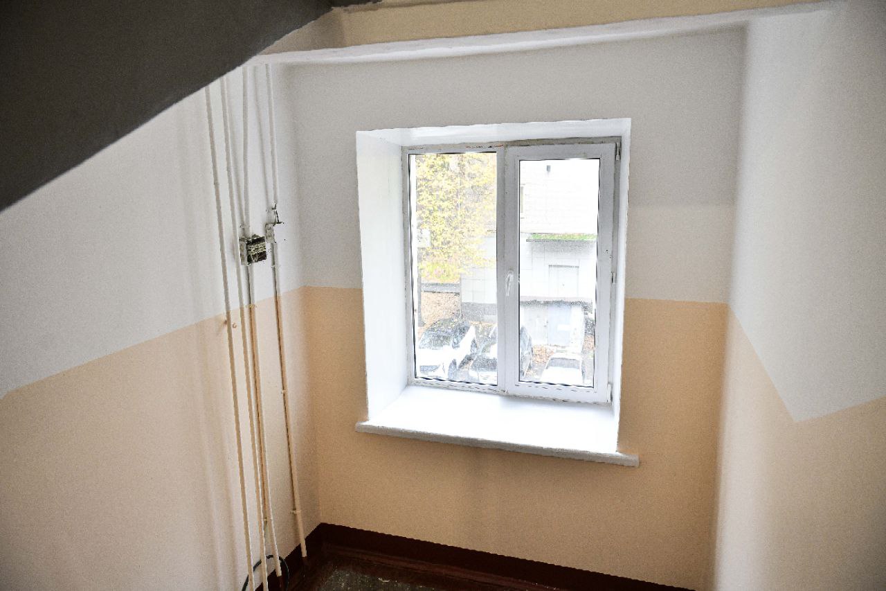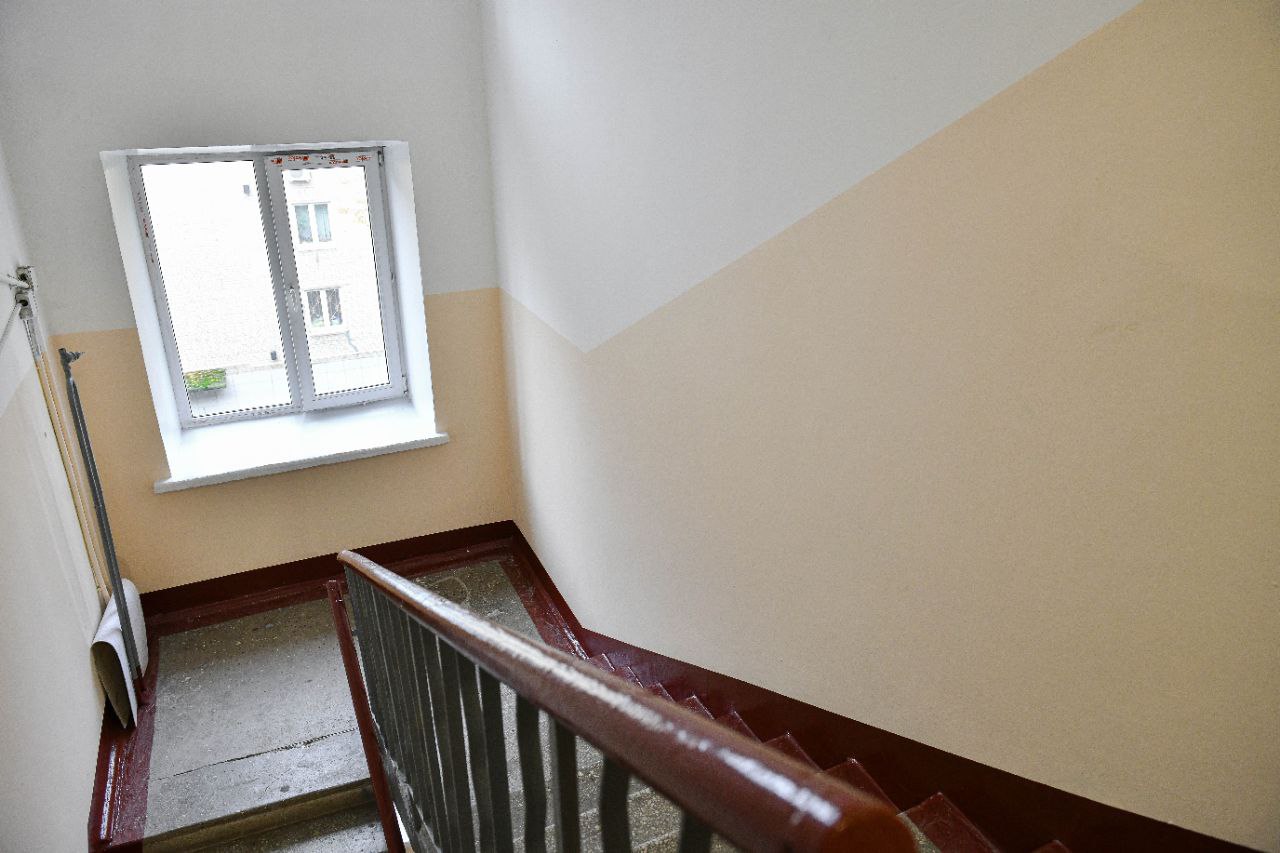 Специалисты покрасили потолки и стены, заменили окна и светильники. В подъездах установили новые тамбурные двери, заменили изношенные участки перил и ступеней, а также отремонтировали входные группы.