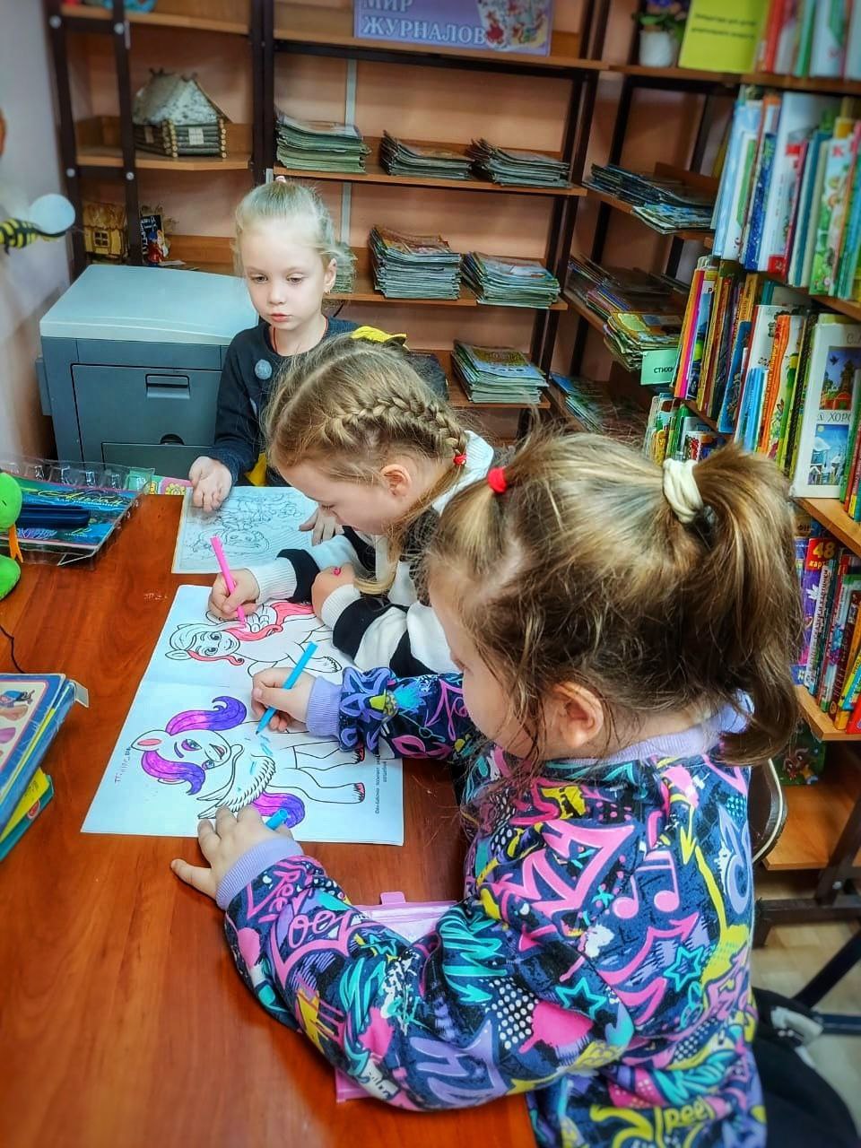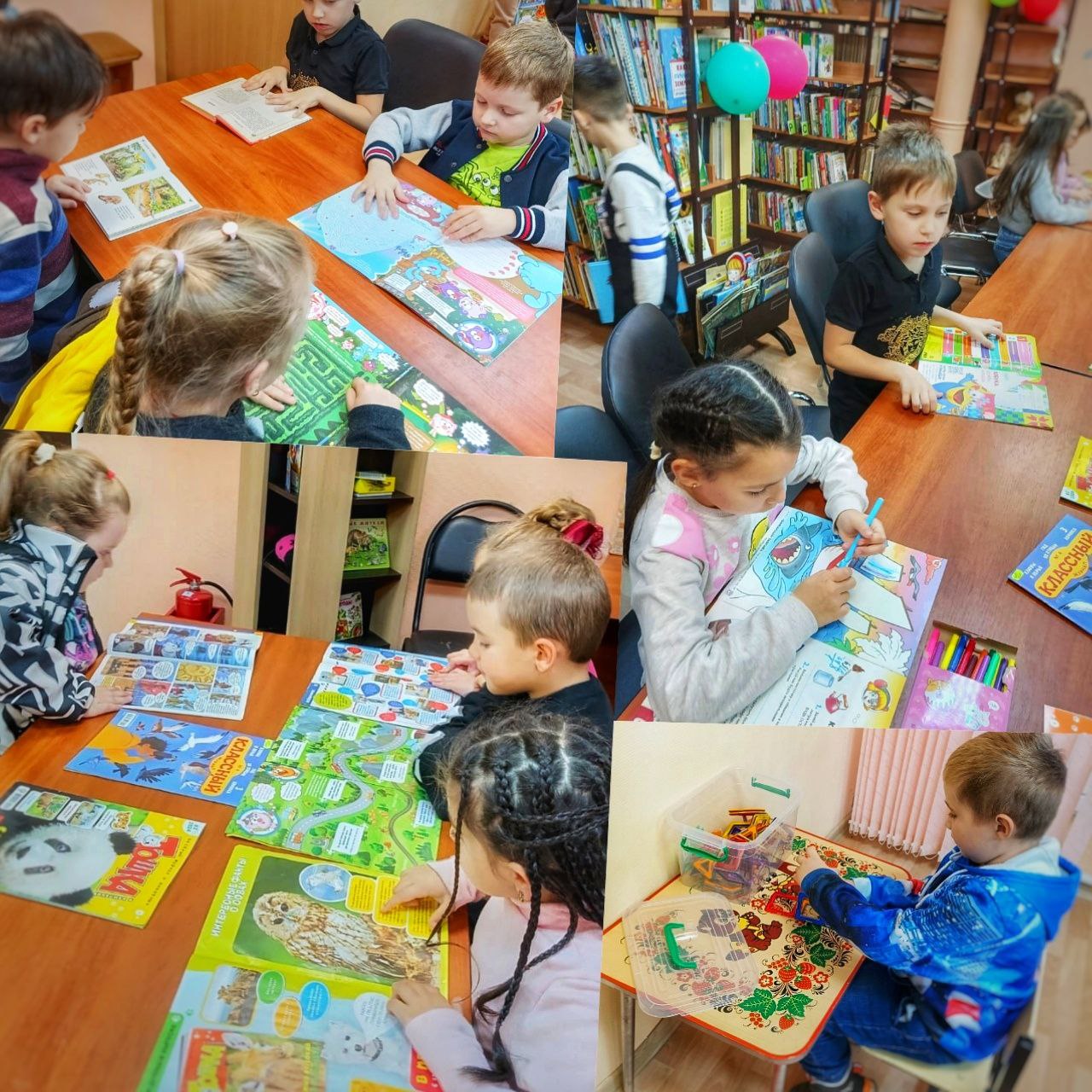 Дошкольники взяли с полки понравившиеся книги, журналы, раскраски, полистали их, рассмотрели иллюстрации, раскрасили картинки.