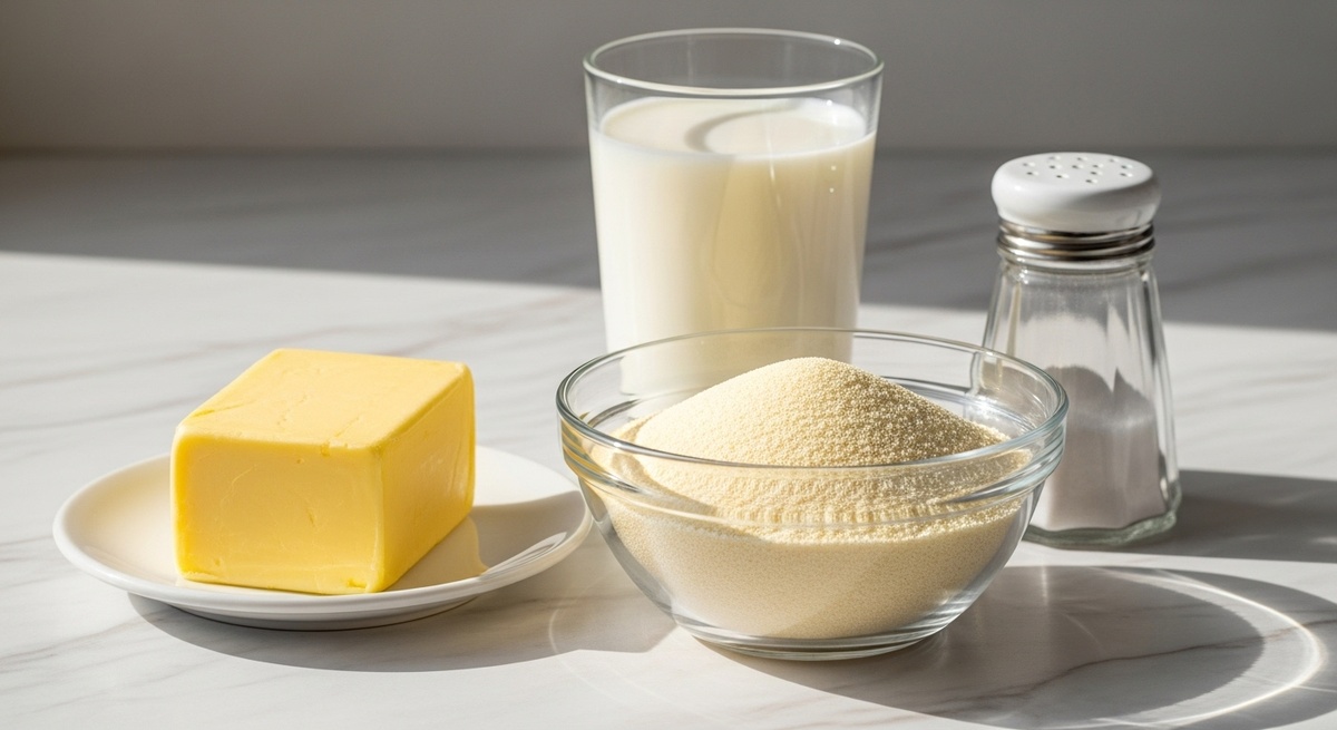 Для того чтобы приготовить настоящую манную кашу, потребуется собрать все необходимые ингредиенты. Вот что понадобится: