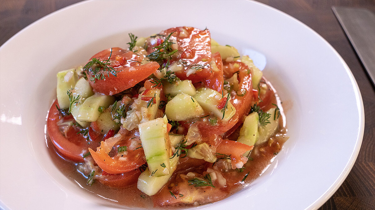 Такой салат идеально подойдет как для обеда, так и для ужина, предоставляя нам возможность насладиться освежающей легкостью овощей. Приятного аппетита!