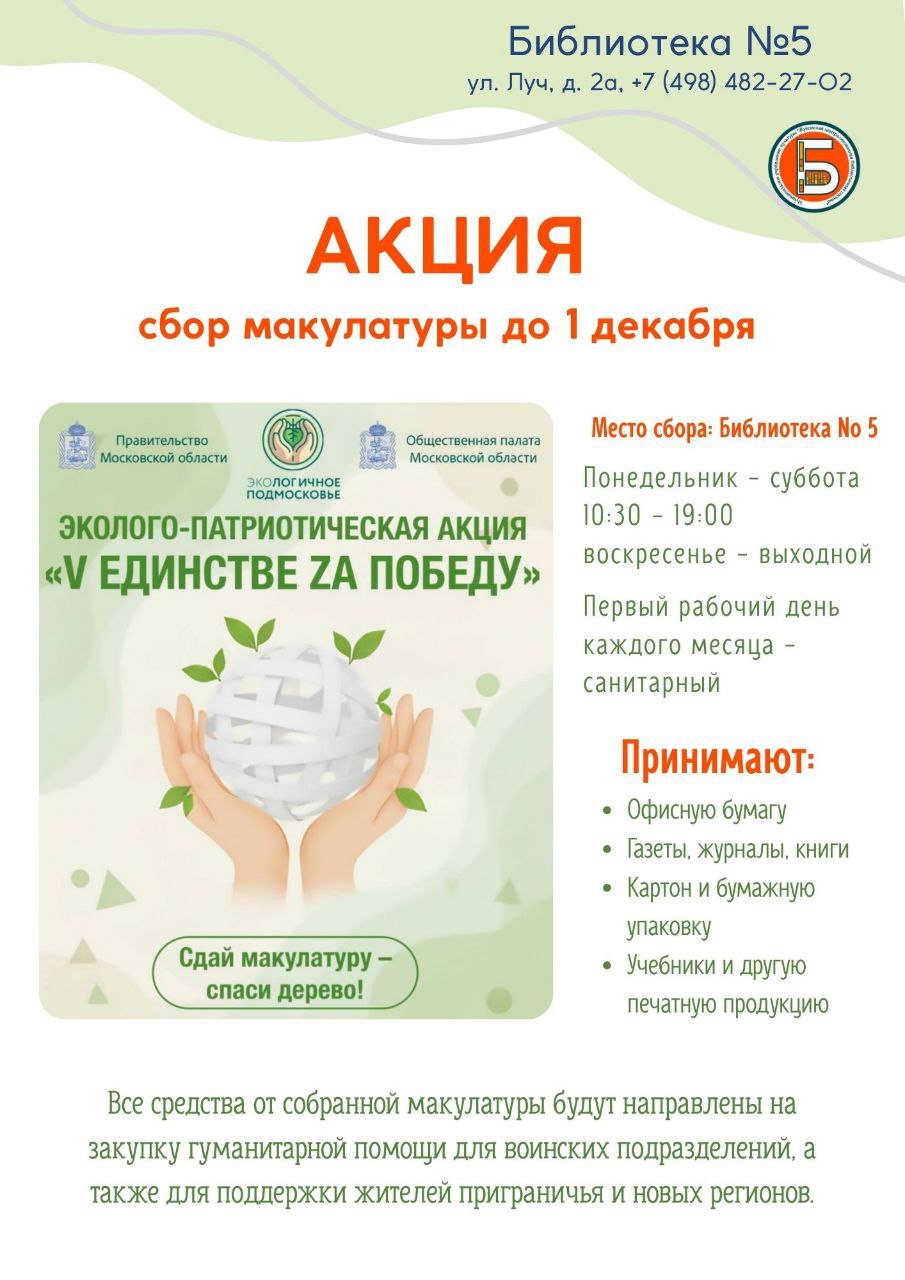 Жуковские библиотеки присоединились к областной эколого-патриотической акции по сбору макулатуры «V Единстве Za Победу»!