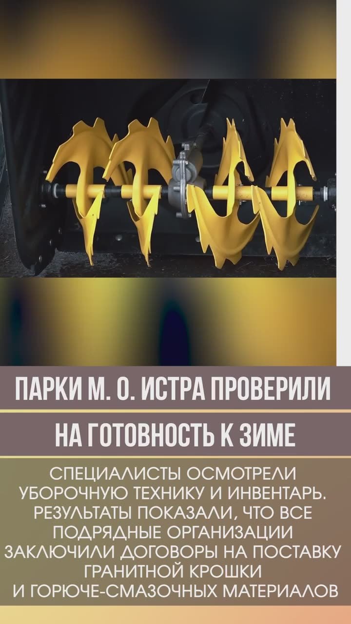 Парки м.о. Истра проверили на готовность к зиме. Специалисты осмотрели уборочную технику и инвентарь. Результаты показали, что все подрядные организации заключили договоры на поставку гранитной крошки и горюче-смазочных материалов.