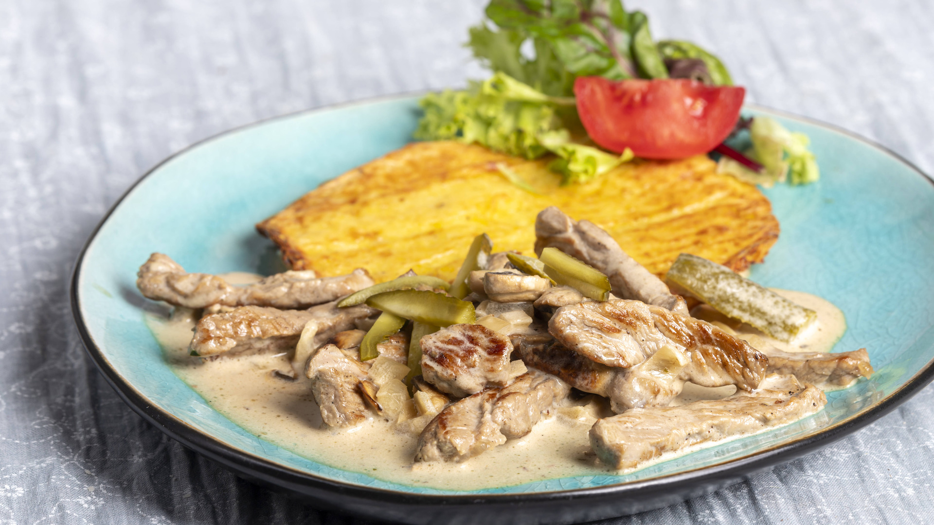 Мясное горячее по рецепту русского графа Строганова только кажется сложным и замысловатым — все-таки его ели в богатых семьях. Хотя на деле порадовать домочадцев роскошным блюдом сможет любая хозяйка, если знать простые правила готовки.