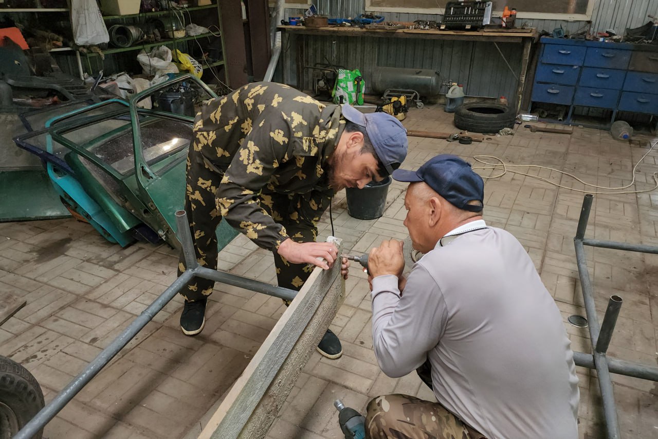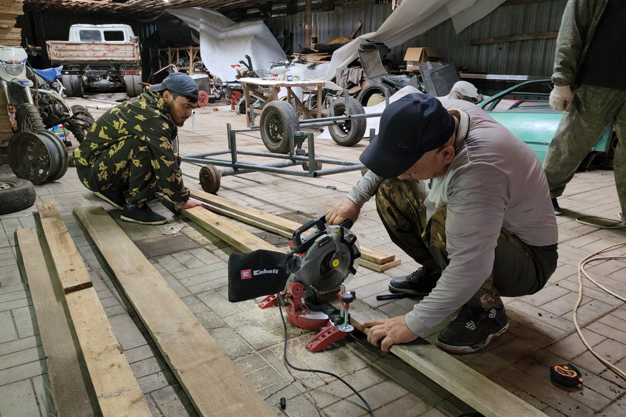 Мастера из Каширы собирают тележки из металлических труб и колес от ВАЗа по чертежам фонда «Содействие развитию городского округа Кашира» для эвакуации раненых и перевозки грузов в зоне спецоперации.