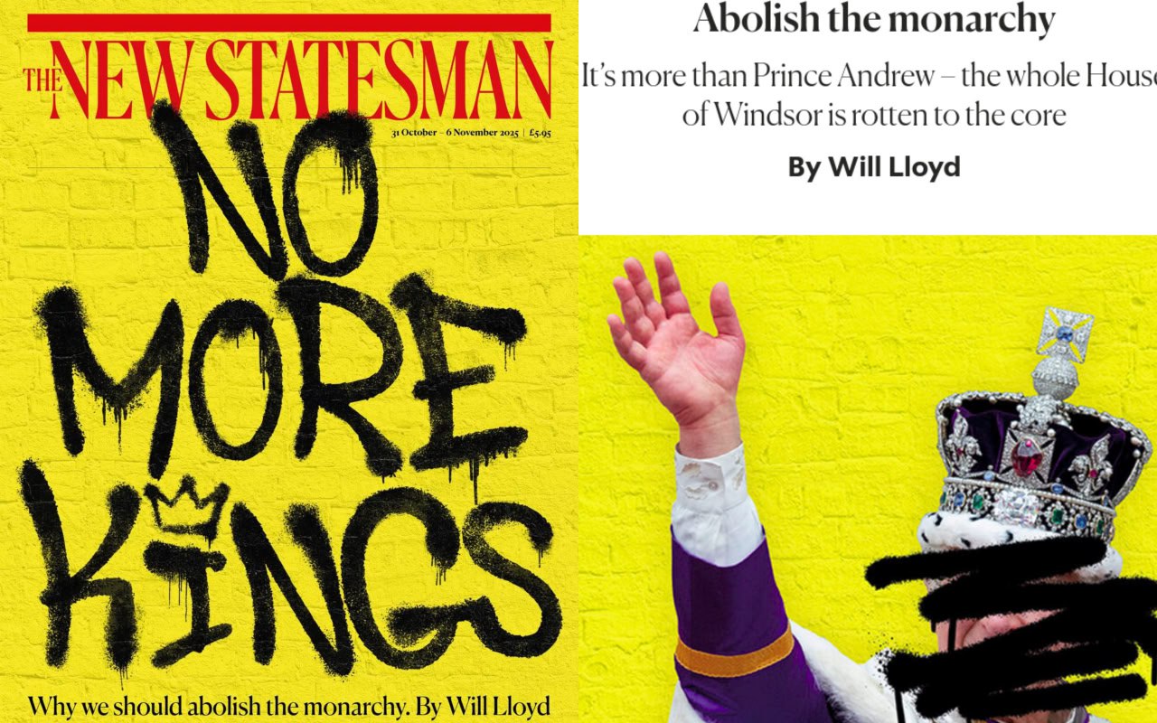 Обложка нового выпуска британского журнала The New Statesman с говорящим заголовком «Больше без королей» обыгрывает последний скандал с принцем Эндрю. Представитель королевской семьи был вынужден отказаться от всех титулов из-за связи с Эпштейном.