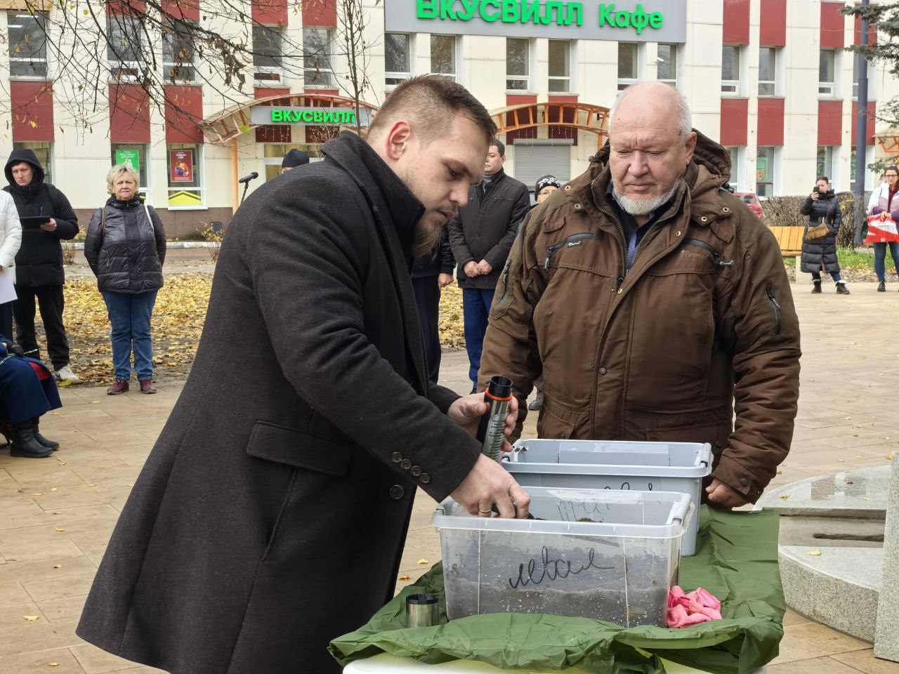 Ключевым моментом мероприятия стала закладка мемориальной капсулы в основание памятника. Капсула была наполнена землей, привезенной с мест массовых расстрелов и заключения, включая Бутовский полигон в Москве и территории бывших лагерей в Северодвинске и Самаре.