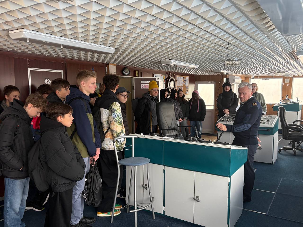 Ребятам представилась уникальная возможность посетить пассажирский теплоход «Михаил Булгаков». Во время экскурсии они зашли в рубку капитана, машинное отделение и осмотрели каюты различных классов.