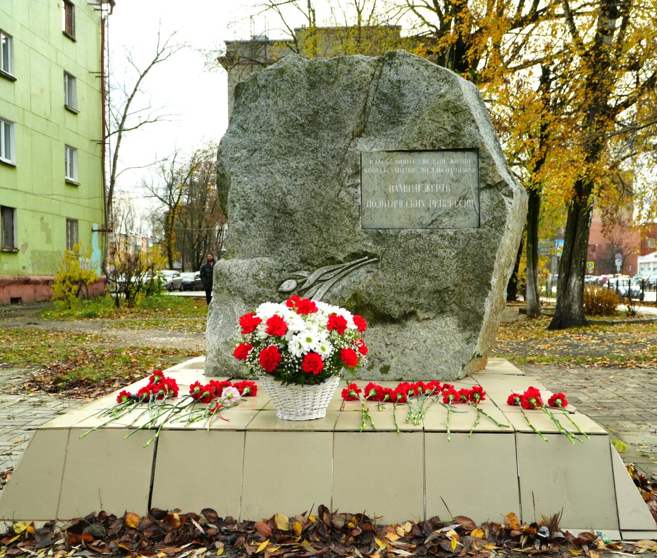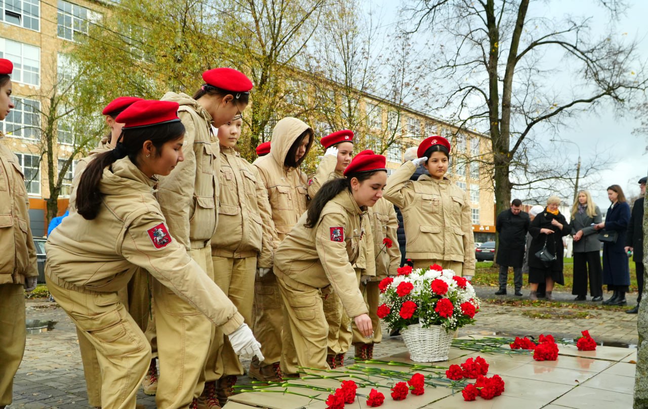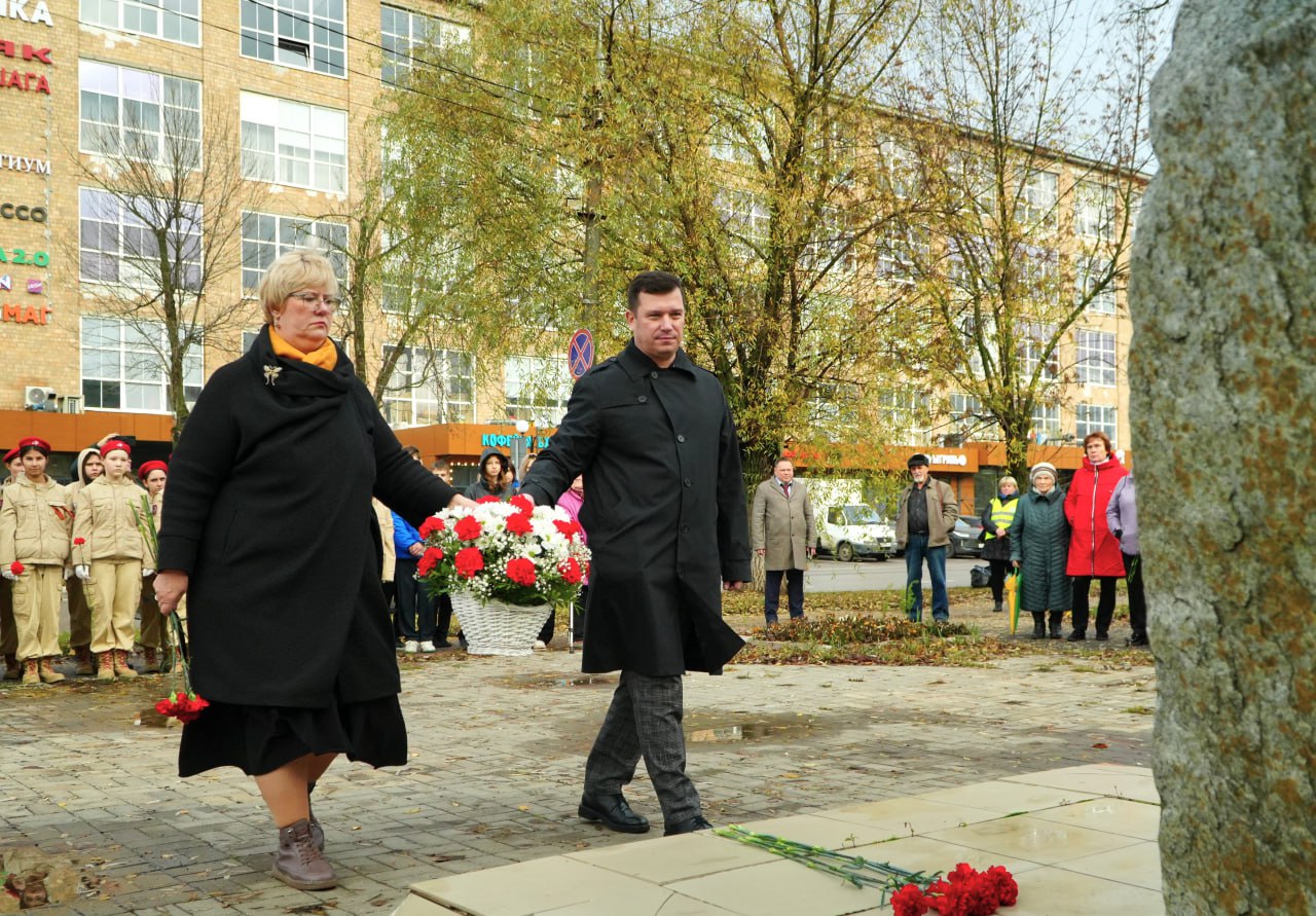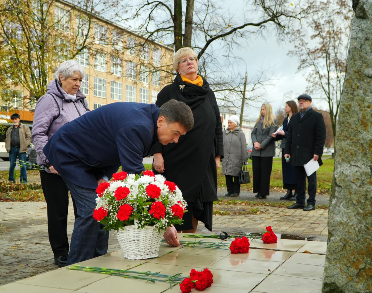 Завершился сбор минутой молчания и возложением цветов к памятному знаку.
