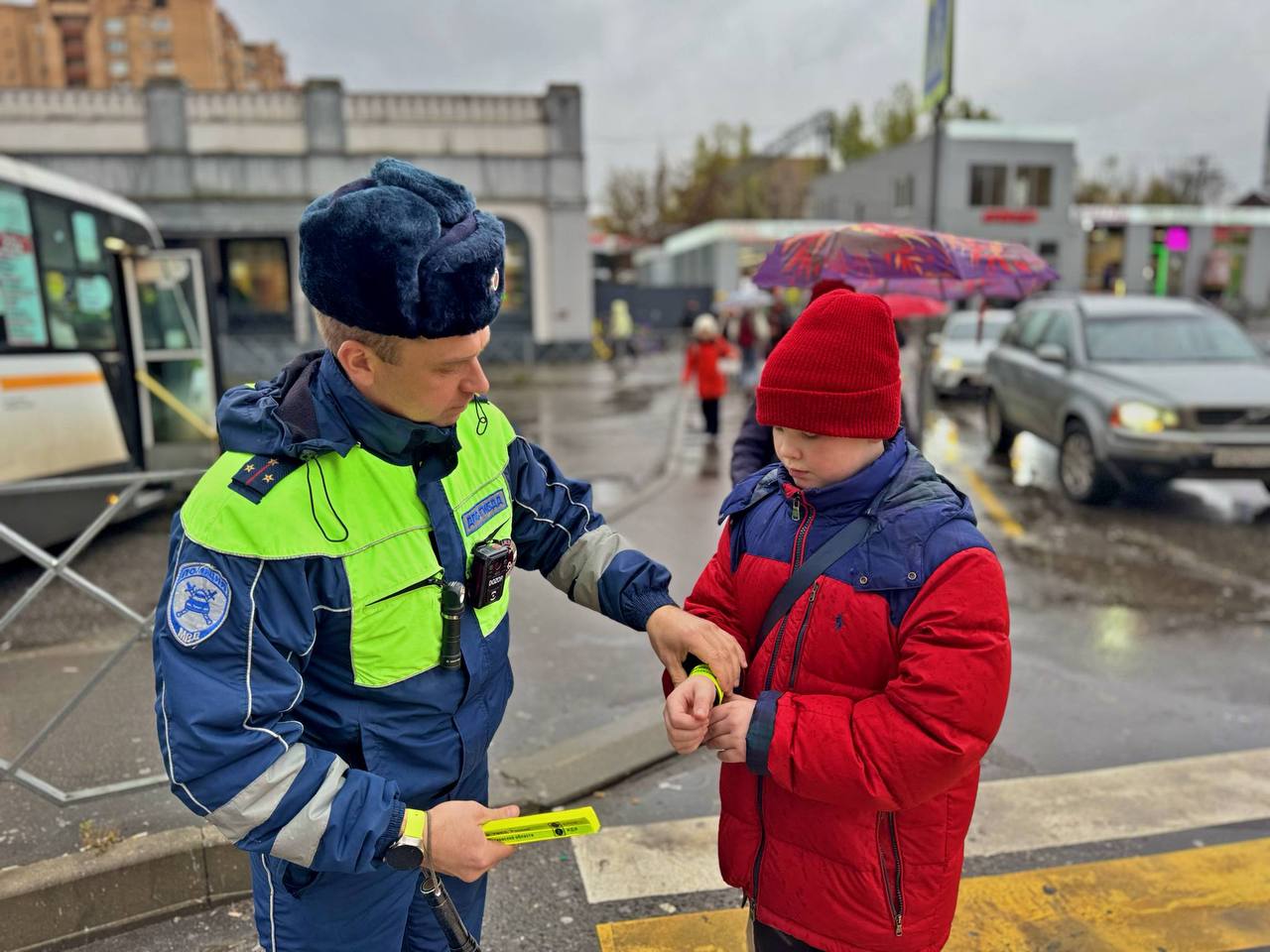 Чтобы помочь пешеходам стать заметнее, сотрудники Госавтоинспекции вручают СВЭ-браслеты, призванные повысить их видимость, особенно в дождливую и пасмурную погоду.