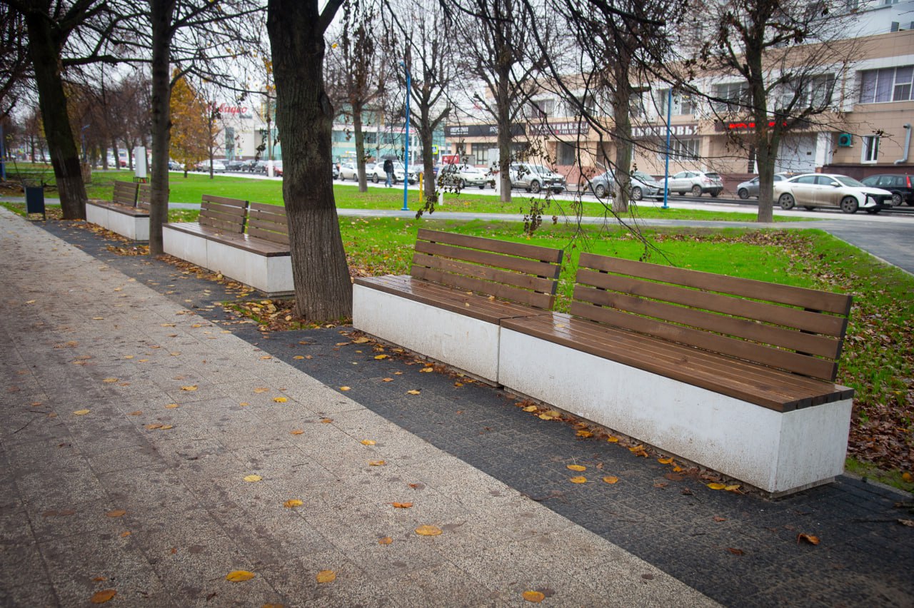 В сквере были посажены многолетние растения и деревья, оценить которые в полной мере жители смогут уже весной. Установлены комфортные скамьи, благоустроены пешеходные зоны, появилось новое освещение.
