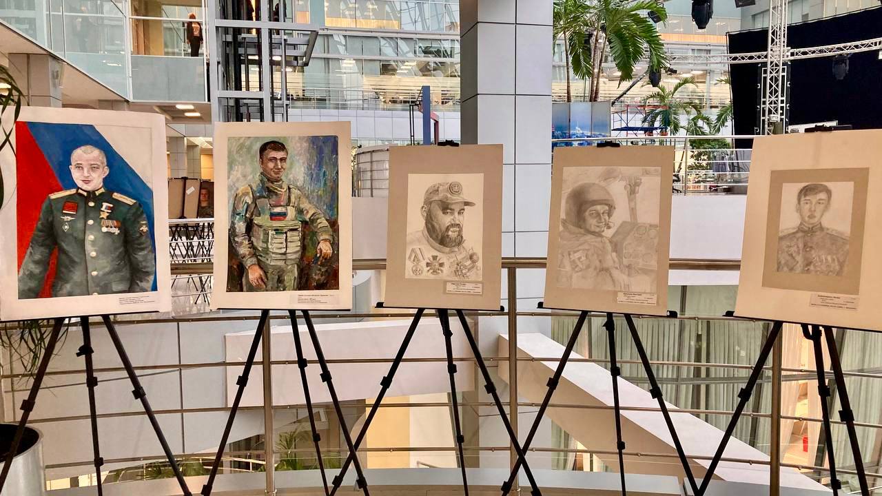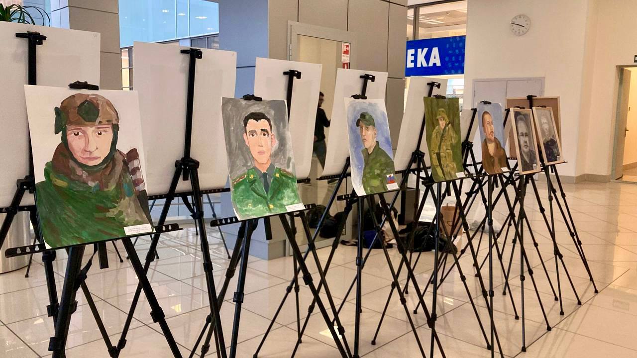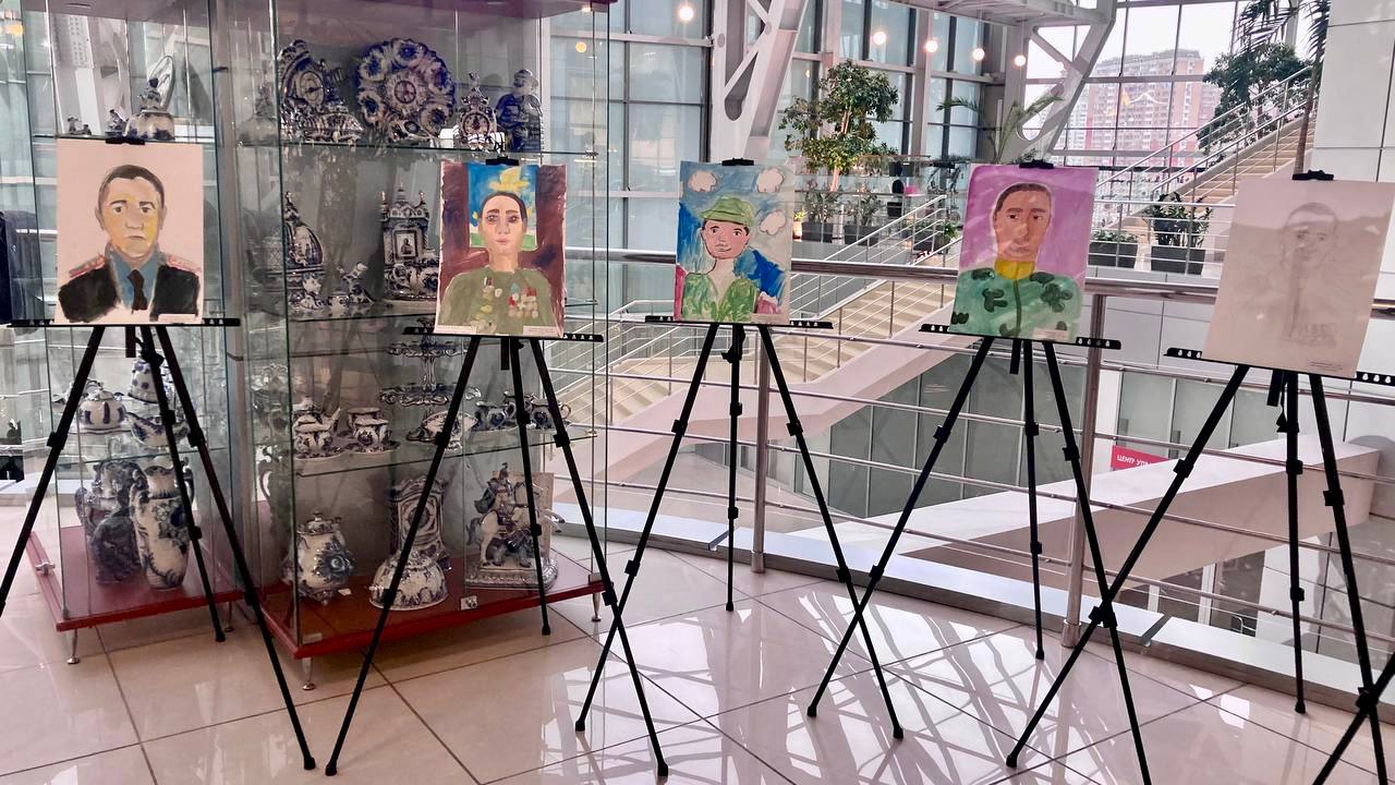 В экспозиции — детские портреты защитников Отечества, участников специальной военной операции. Юные художники Подмосковья создавали их в рамках одноимённого фестиваля, инициированного депутатом Госдумы, сопредседателем Ассоциации ветеранов СВО Московской области Сергеем Колуновым, который с мая 2025 года прошёл в 35 округах региона и объединил сотни ребят из семей военнослужащих.