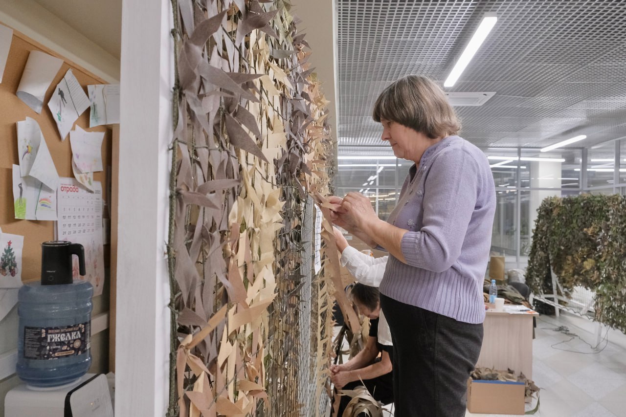 Жители округа также не остаются в стороне. На базе Центра поддержки волонтеры плетут маскировочные сети, создают браслеты выживания и сухие армейские души, а также заливают блиндажные свечи.