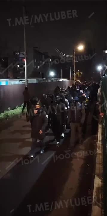 Большая колонна «Русской Общины», более ста человек, под веселые детские песни прошла строем по району «Птицефабрика» в подмосковных Люберцах.