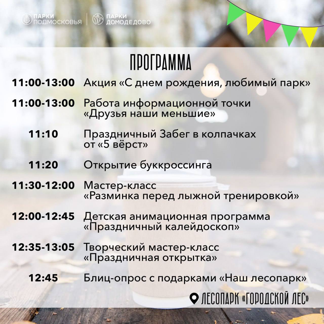 Гостей ждёт уютное чаепитие с заведующим лесопарка – можно будет задать вопросы, поделиться идеями и просто пообщаться в дружеской атмосфере.