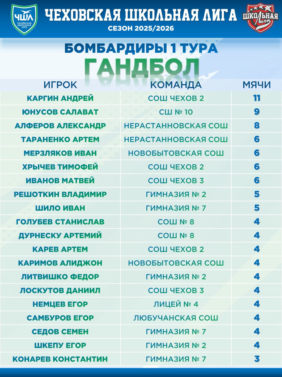 БОМБАРДИРЫ 1 ТУРА | ГАНДБОЛ