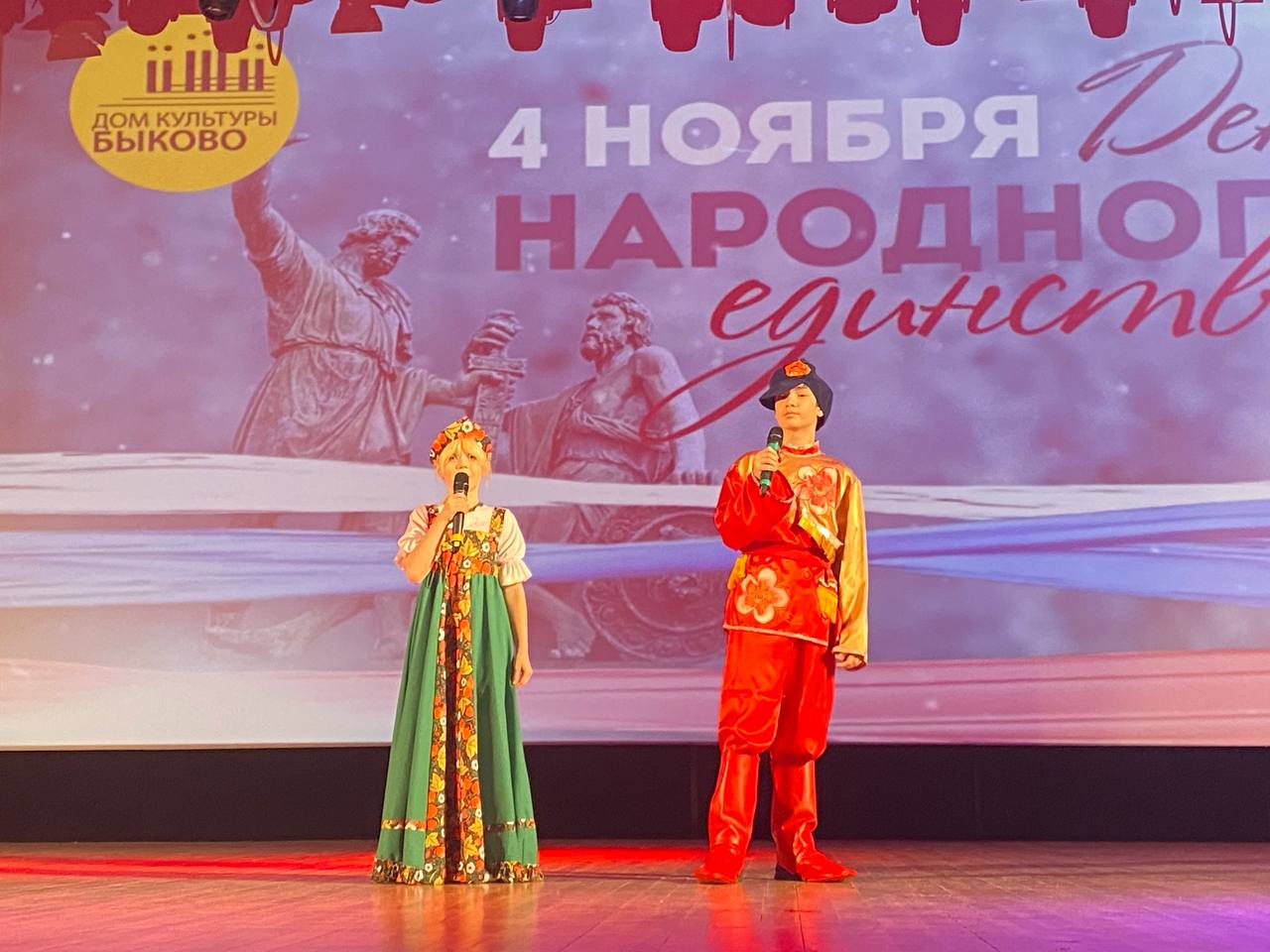В Доме культуры «Быково» состоялся концерт, посвященный Дню народного единства. В роли ведущих выступили участники театрального коллектива «Созвездие» в колоритных костюмах, представляющих многообразие народов России.