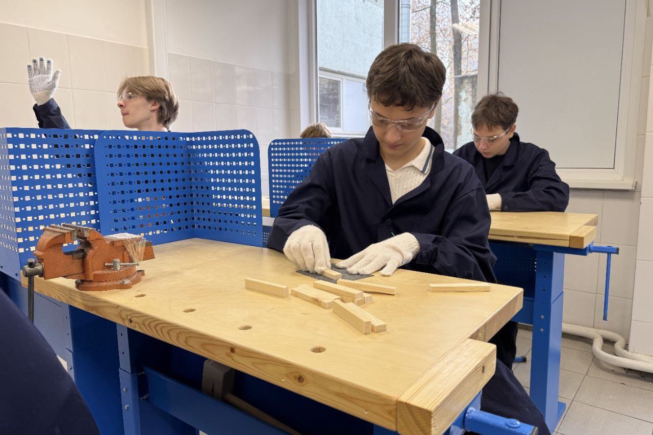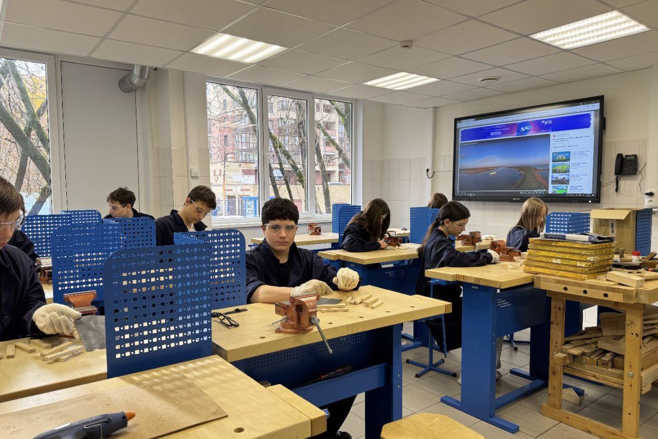 Так, в Государственном университете просвещения молодые люди из гимназии № 17 познакомились с плотницким делом. Им рассказали об основах профессии, после чего ребята освоили азы работы с инструментами и под руководством наставников выполнили первые практические задания.