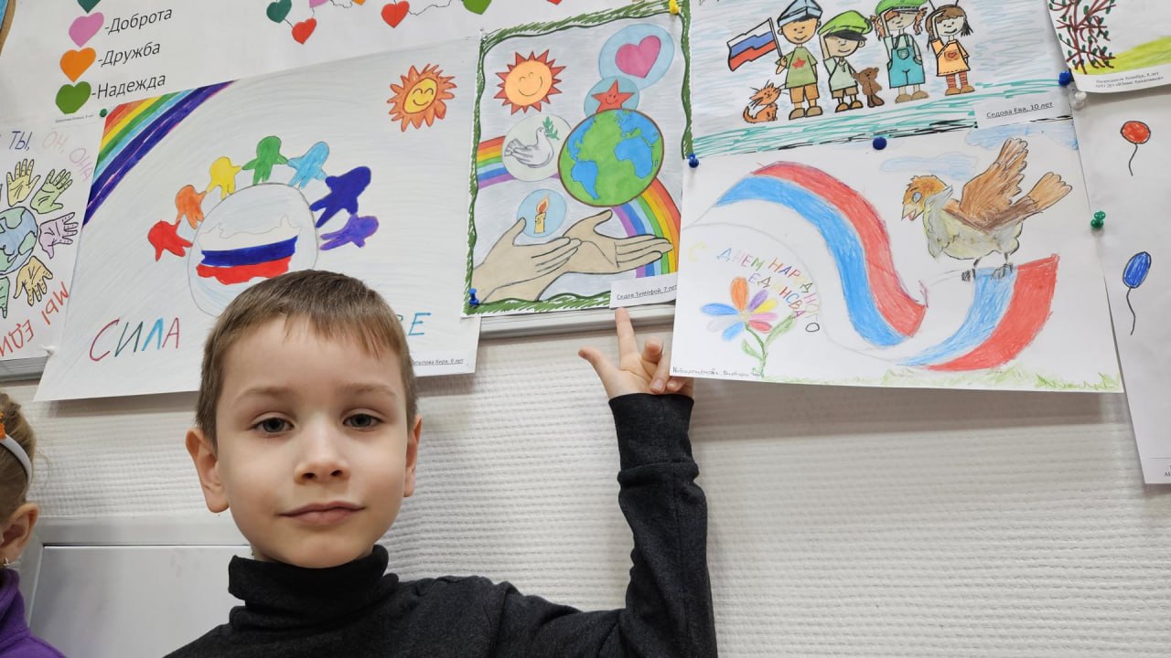 Художественные работы юных долгопрудненцев теперь украшают стену офиса МФЦ. Яркие и трогательные рисунки дарят позитив посетителям и сотрудникам, призывая всех жить мирно и дружно!