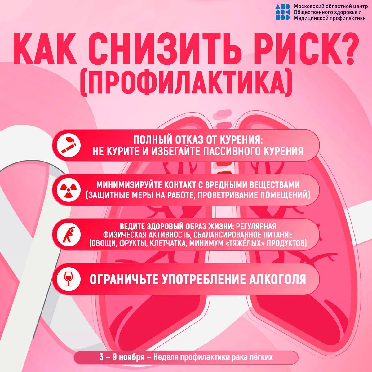 Ранняя профилактика рака легких включает в себя ежегодное прохождение медицинских профилактических осмотров, диспансеризации и флюорографии.