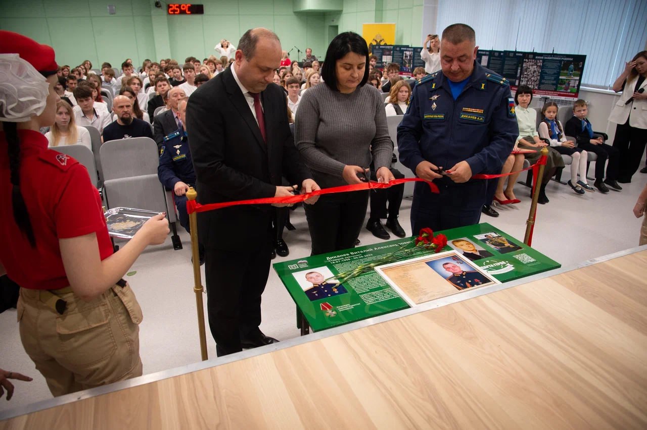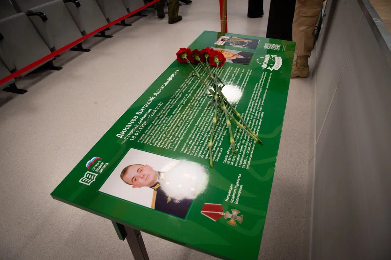 В школе №14 состоялась торжественная церемония — открытие «Парты Героя», посвященной выпускнику школы, участнику специальной военной операции, старшему лейтенанту Виталию Александровичу Диканёву.