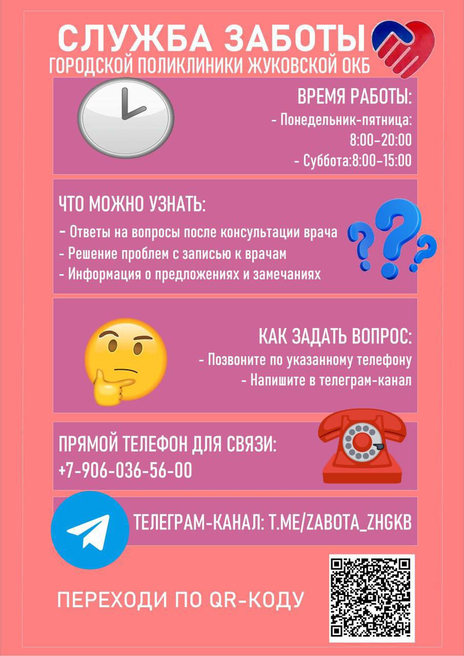 Номер телефона горячей линии главного врача Жуковской ОКБ: