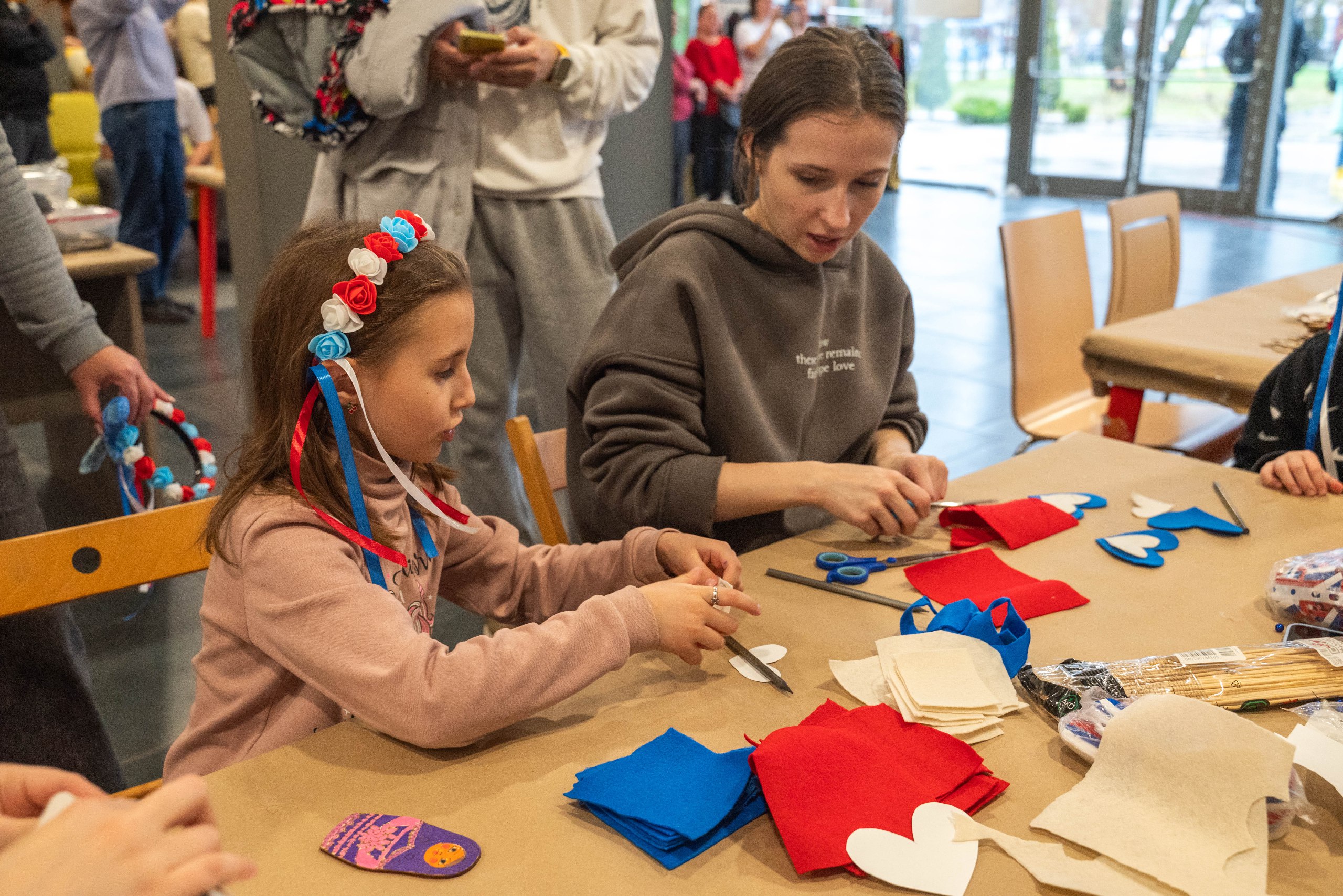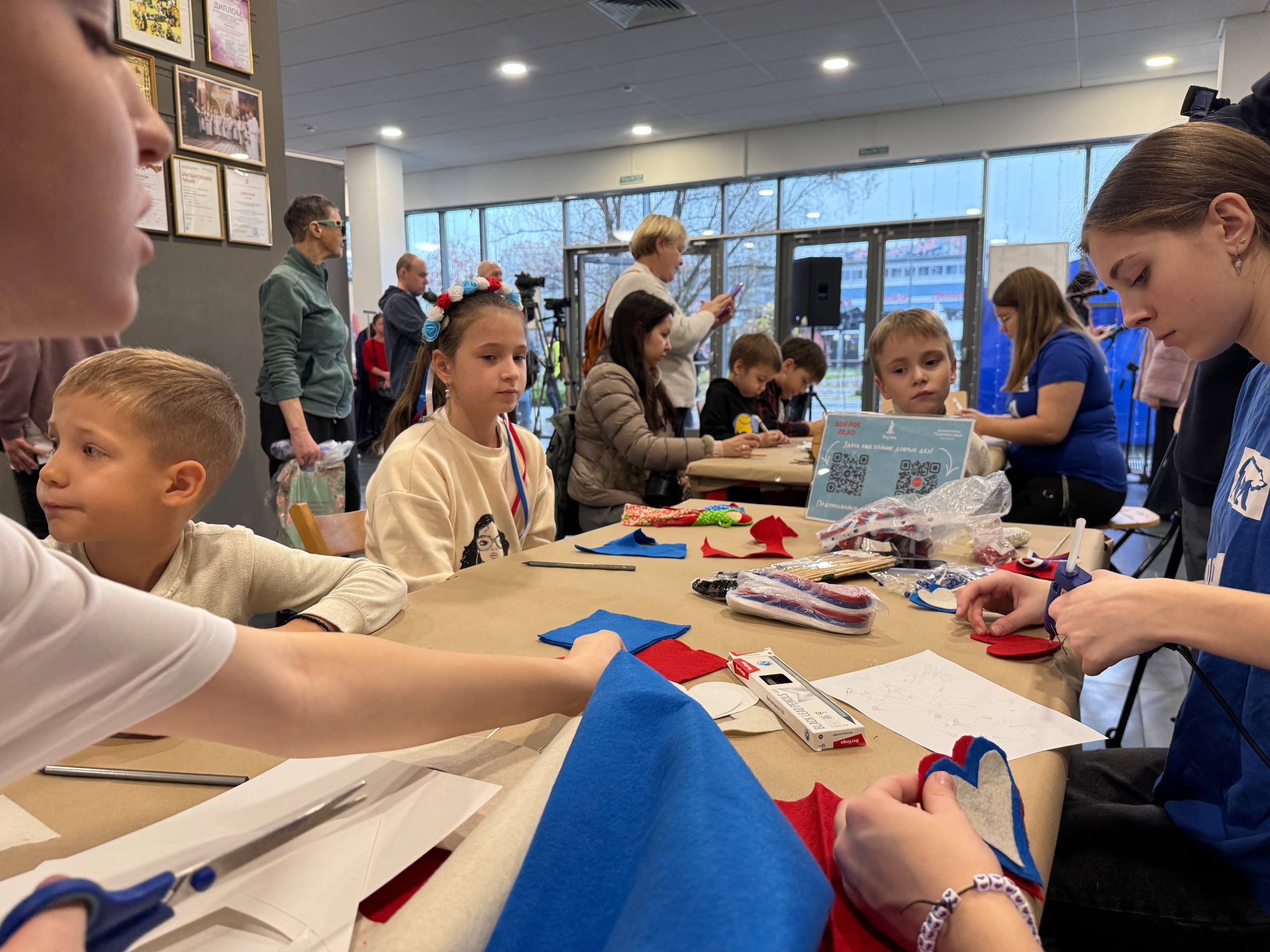 Особое внимание привлек патриотический мастер-класс под названием «Сердце России». Под руководством волонтеров дети и взрослые изготавливали из ткани символические броши в форме сердца, выполненные в цветах российского триколора. Эти памятные сувениры, сделанные своими руками, призваны передать частичку тепла и напомнить защитникам о поддержке и единстве народа.