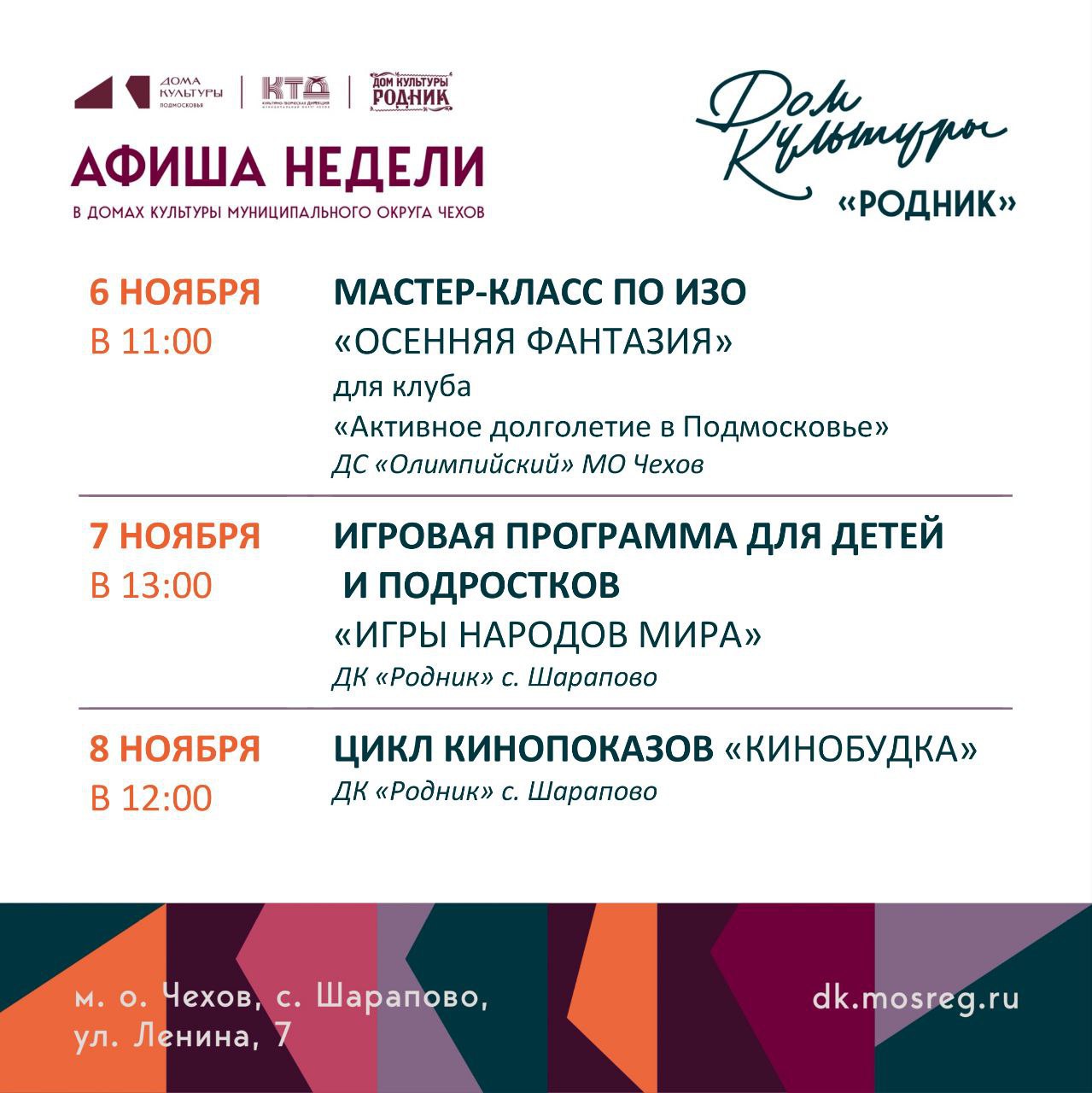Афиша недели Дома культуры "Родник" м.о. Чехов