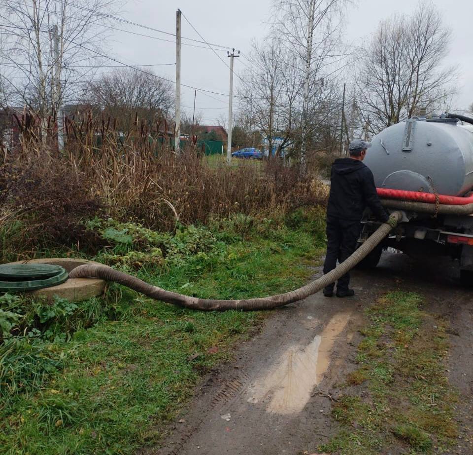 Сотрудники МБУ "Чеховское благоустройство" проводят работы по откачке септика