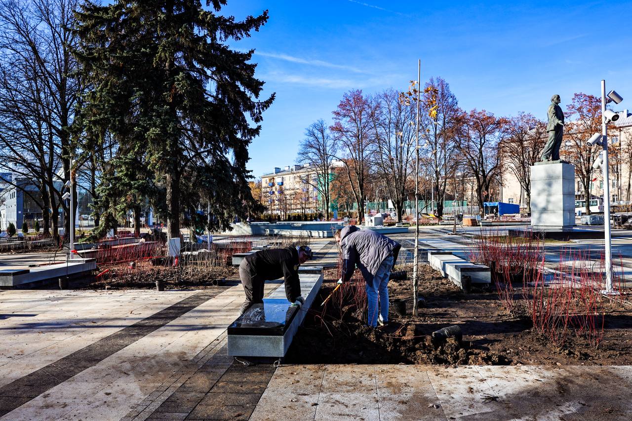 Основные работы по благоустройству сквера выполнены. На сегодняшний день остается высадить зеленые насаждения, завершить обрамление лавочек гранитом и уложить на них деревянные настилы.