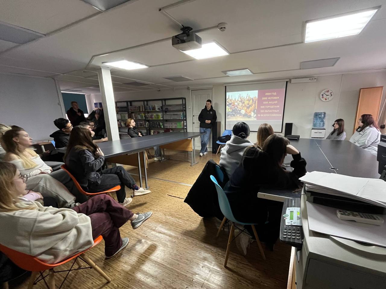 Обсудили актуальные молодёжные движения и инициативы, поговорили о том, как сегодня живёт и развивается молодёжь в городском округе. Студентам рассказали о предстоящих мероприятиях и пригласили присоединиться к работе организации — посетить собрания и стать участниками.