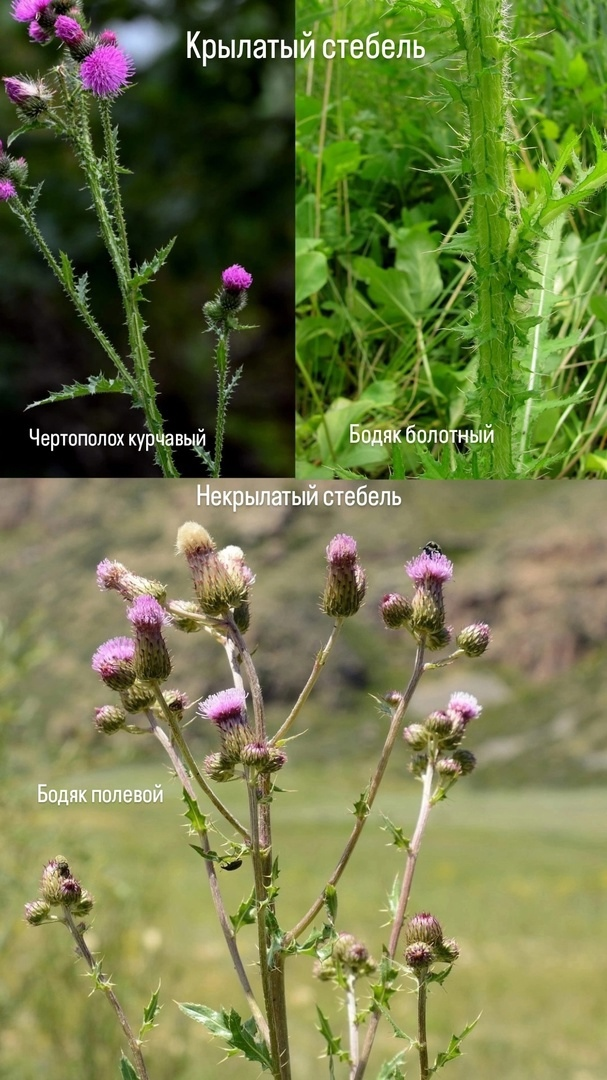 - Бодяк болотный (Cirsium palustre): выбирает влажные места, часто встречается вдоль водоемов и болот.