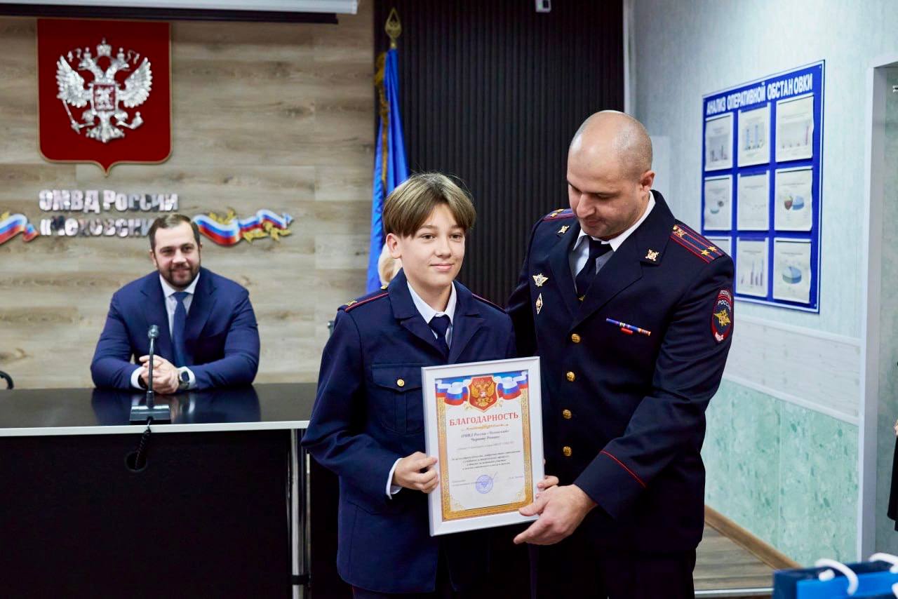 Сегодня на празднике присутствовали наши кадеты из средней школы № 3, которые под руководством своих наставников из отдела ОМВД «Чеховский» постигают азы профессии и воспитываются в духе патриотизма и любви к своей стране. Начальник Чеховского отдела вручил ребятам Благодарственные письма за целеустремленность, добросовестное отношение к учебному и творческому процессу, а также за активное участие в жизни кадетского класса и школы.