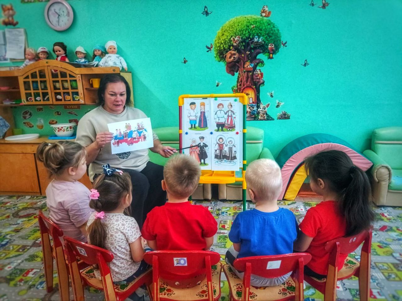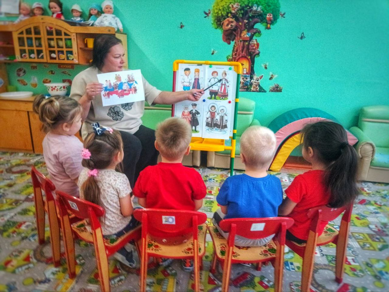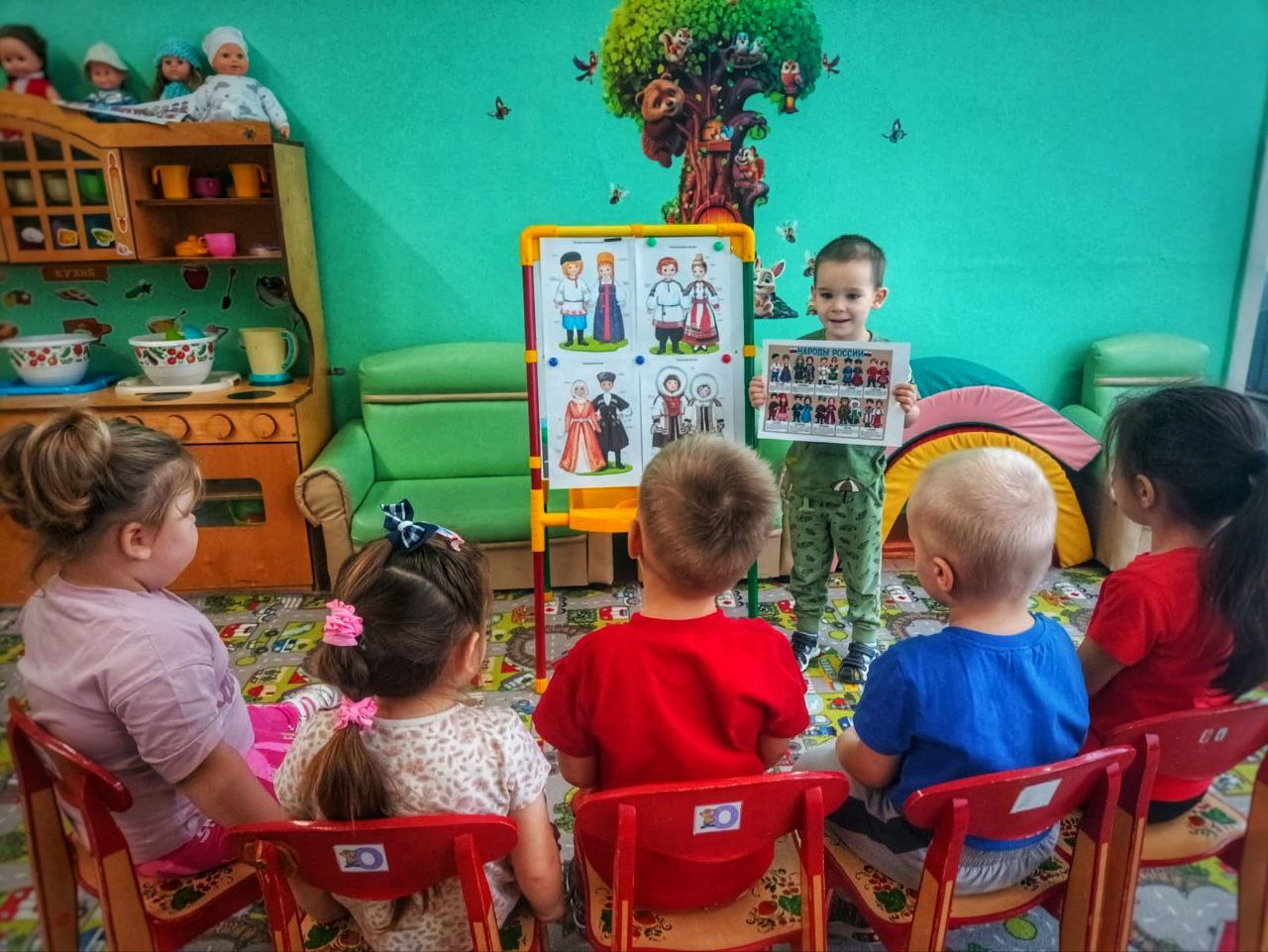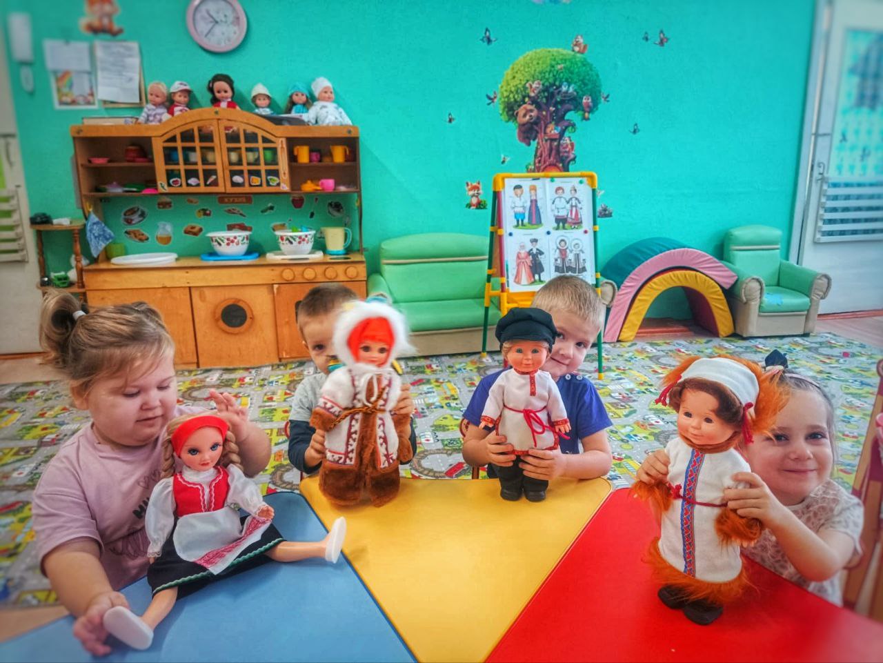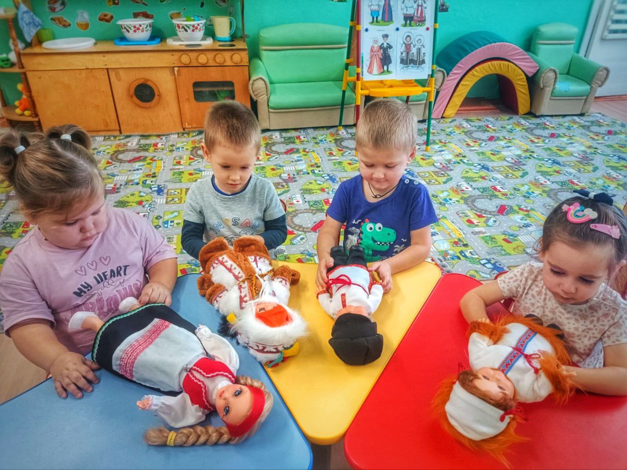 В рамках реализации проекта "Предшкола: стандарт детского сада" в дошкольном отделении гимназии №2 м.о. Чехов (здание 3, п. Васькино) в первой младшей группе №41 на лексической неделе "Неделя толерантности. Народы России" прошло познавательное занятие с целью ознакомления с культурой и традициями народов, населяющих территорию нашей страны. Дошколята рассмотрели кукол в национальных костюмах.