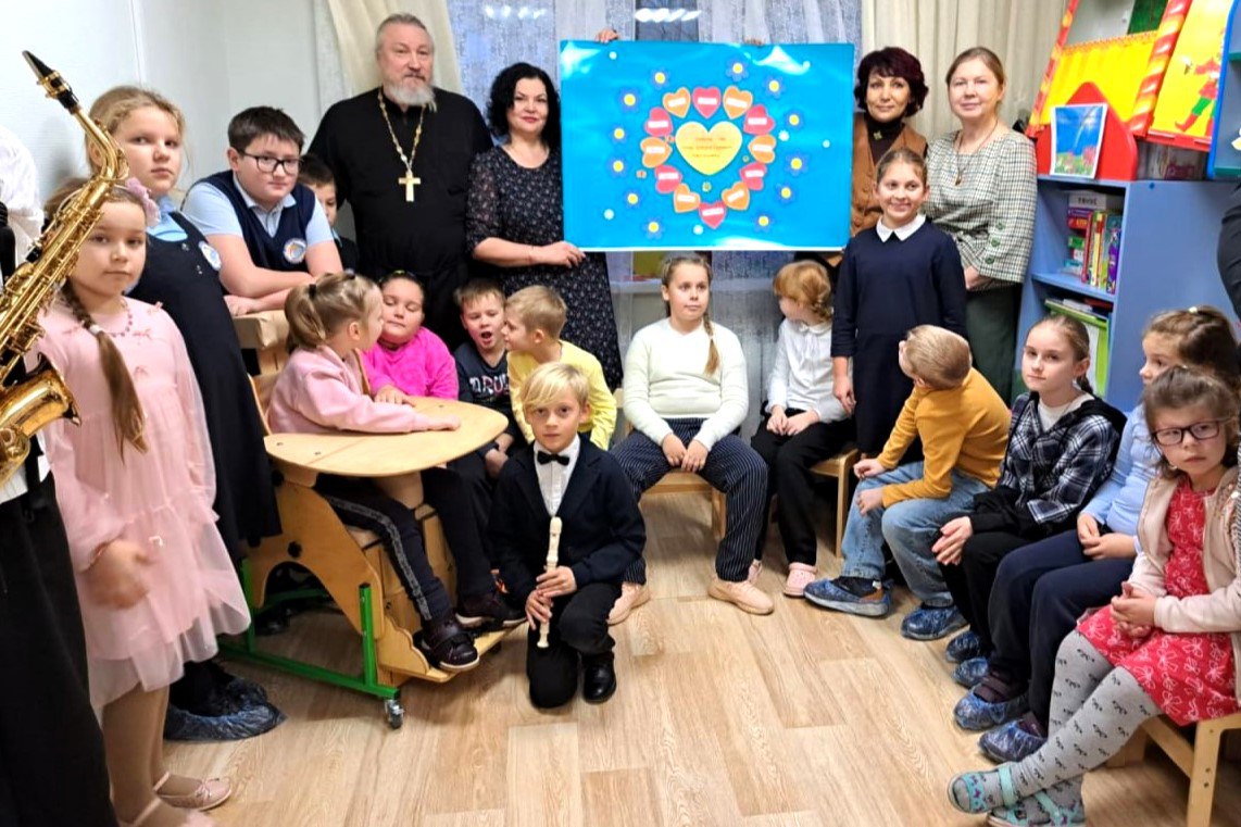 Вместе с педагогами они создали плакат на тему «Доброта», а затем юные музыканты из воскресной школы дали концерт, исполнив произведения на скрипке, флейте и саксофоне. Воспитанники центра реабилитации также приняли в нем участие, прочитав стихи. После были проведены игры, где участники получили подарки, а священник иерей Андрей Дрогонин провел беседу с родителями о духовных ценностях.