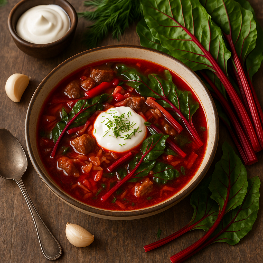 Как приготовить борщ с мангольдом