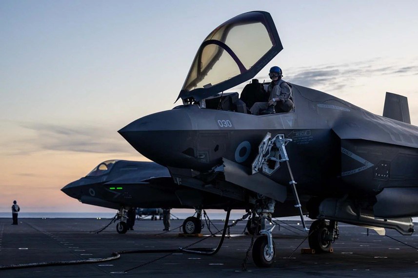 ВМС Великобритании сообщили, что на их авианосце Prince of Wales, находящемся в Средиземном море, авиагруппа впервые была доведена до 24 истребителей Lockheed Martin F-35B, что стало максимальным количеством самолетов этого типа, когда-либо находившимся на британских авианосцах. Самолеты авиагруппы авианосца входят в состав 617-й эскадрильи Королевских ВВС и 809-й эскадрильи морской авиации. Фото (с) ВМС Великобритании