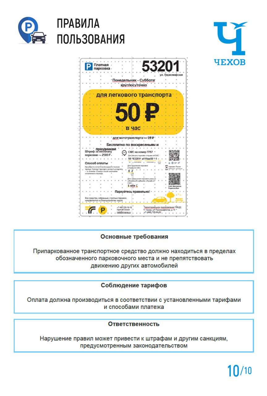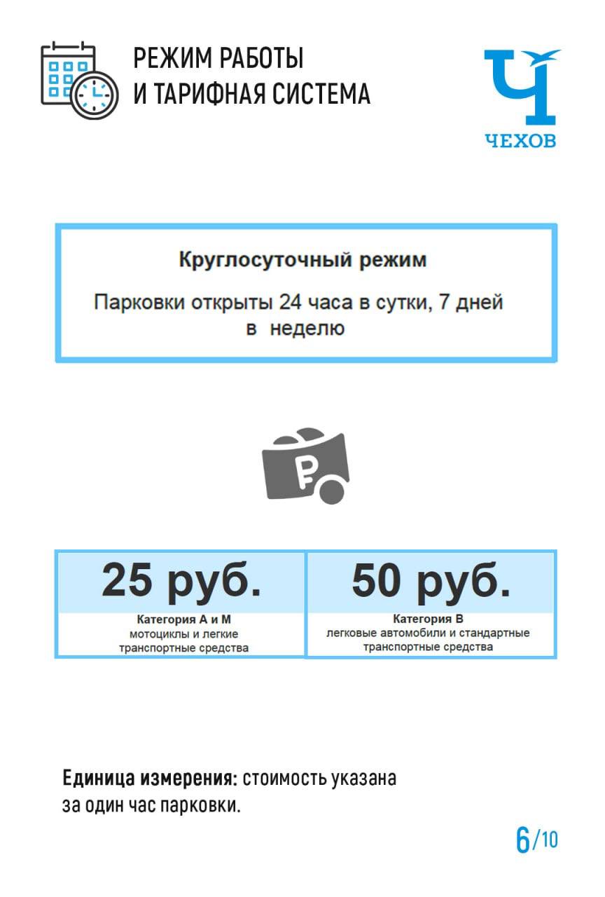 Работа парковочных пространств будет осуществляться в режиме круглосуточного обслуживания. Бесплатно припарковать транспортное средство можно будет: каждое воскресенье с 00:00 до 24:00; в нерабочие праздничные дни, а также если остановка транспортного средства осуществляется на период не более 10 минут. Оплатить парковку можно через приложение «Парковки России» и СМС на номер 7757. С подробной информацией о платных парковках в Московской области можно ознакомиться на сайте Министерства транспорта и дорожной инфраструктуры Московской области.