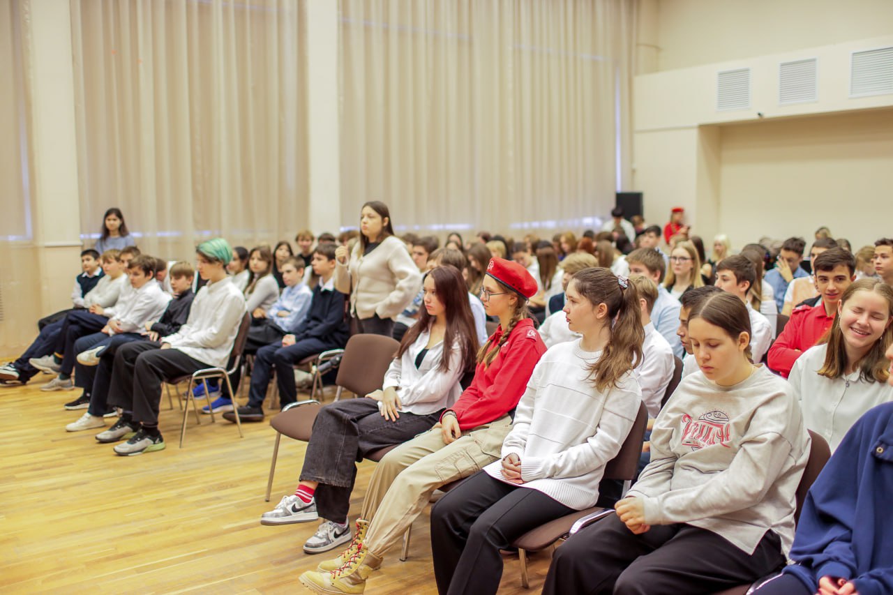 Гимназисты с интересом слушали исторический рассказ и внимательно рассматривали обмундирование. Они узнали, что такое гимнастерка, откуда появилась буденовка и почему советские военнослужащие полюбили шапку-ушанку.