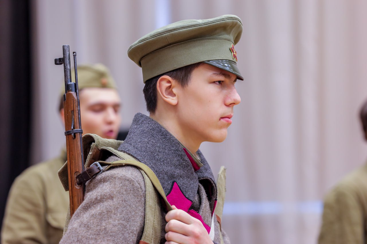 Руководитель военно-исторического центра «Искатель» Леонид Трестин провел для учеников гимназии №5 занятие, посвященное военным парадам 1918 и 1941 годов. В мероприятии приняли участие более 250 школьников, которые не только познакомились с важными событиями XX века, но и смогли увидеть форму и оружие солдат Красной армии того времени.