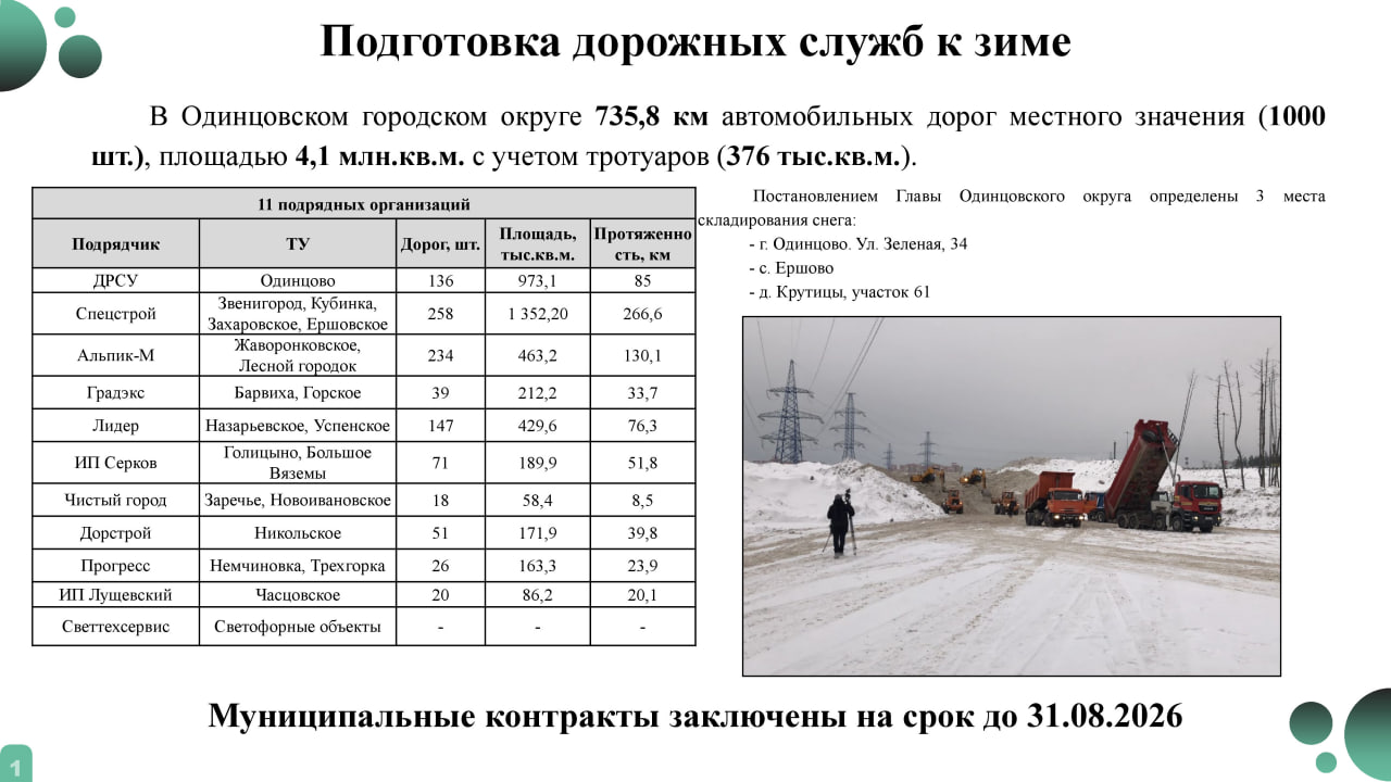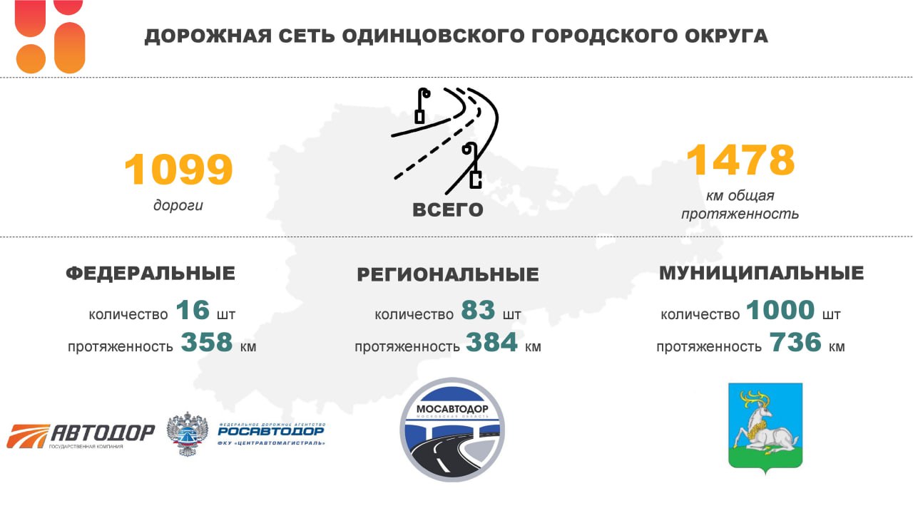 Всего в Одинцовском округе — 1099 дорог общей протяжённостью почти 1,5 тысячи километров: