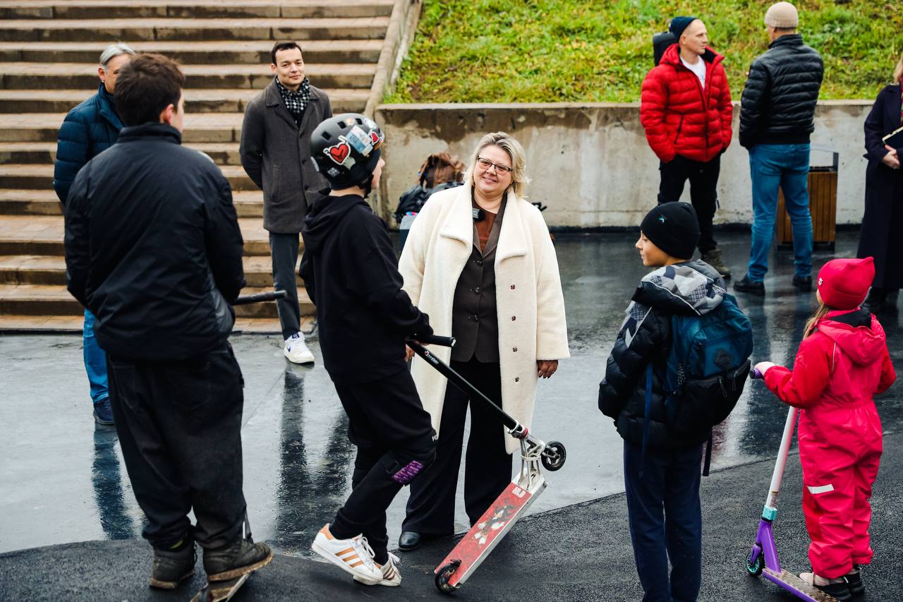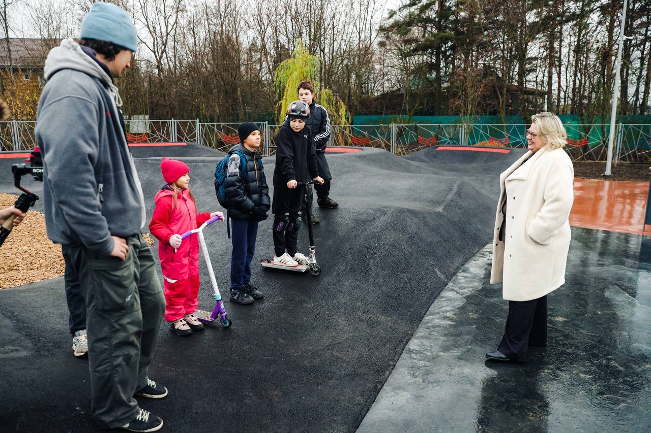 Юные жители Химок поделились впечатлениями о новом скейт-парке с Еленой Земляковой