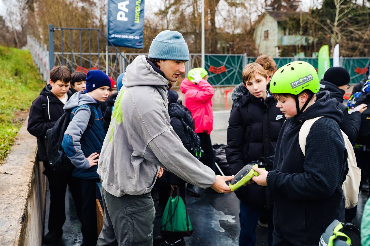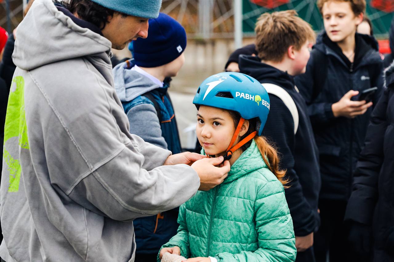 Урок для всех желающих провели опытные тренеры школы «Равновесие». Ребятам рассказали о правилах безопасности, обучили азам обращения с самокатами, а также показали несколько трюков на новой площадке.